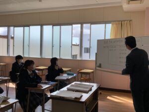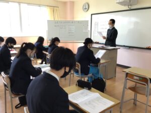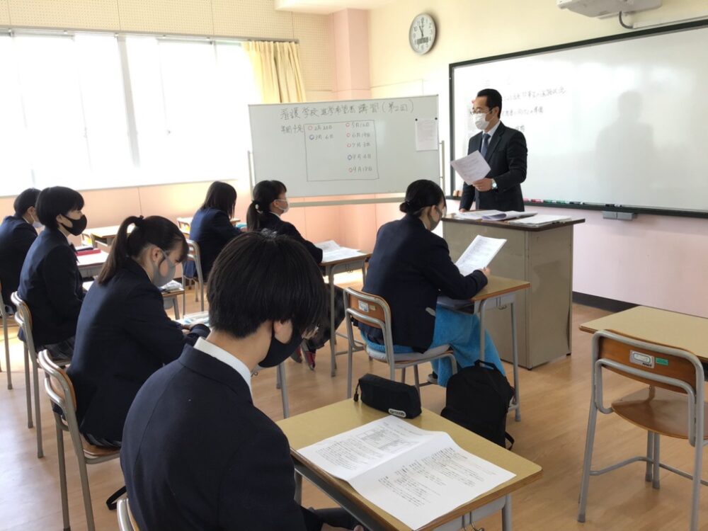 第2回となる今回は、本校の進路・キャリア教育担当から、看護系学部や学科への進学を希望する上での注意点、対策、心構えについて学びました。