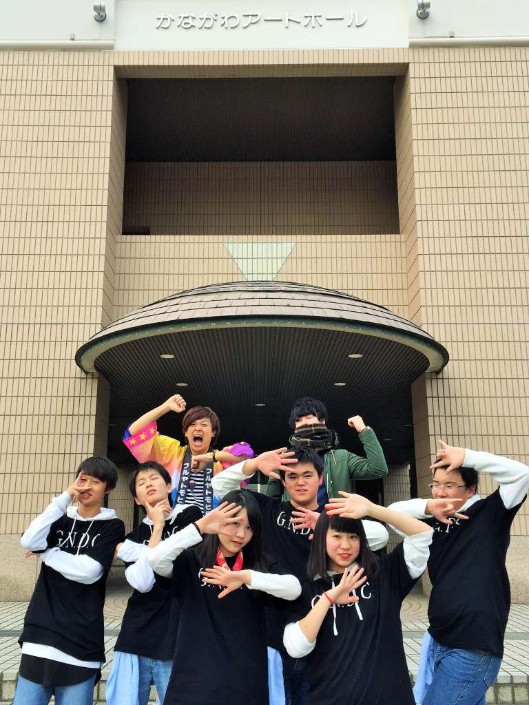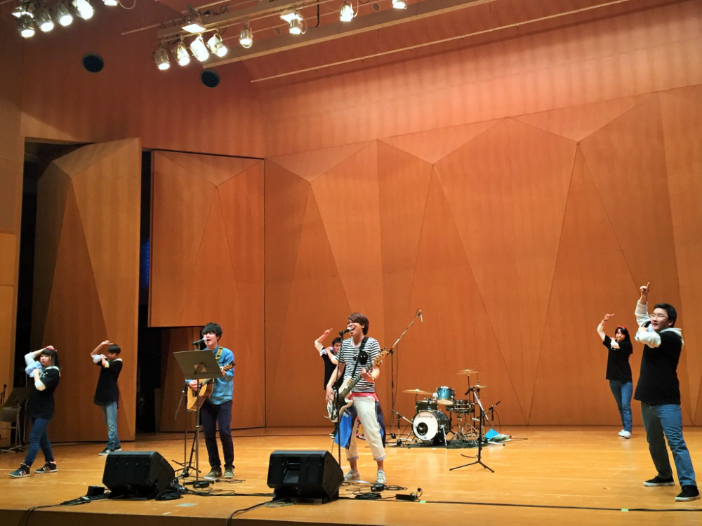 このライブには御殿場市出身のフルヤトモヒロさんが、山梨県の大久保俊臣さんとコラボして出演しました。本校ダンス同好会はフルヤさんの縁でバックダンサーを務め、会場を大いに盛り上げました。