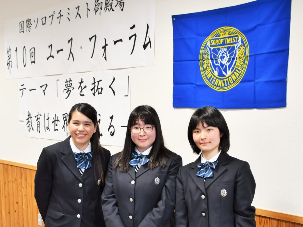 このほど、国際ソロプチミスト御殿場主催の「第10回ユース・フォーラム」が開かれ、本校から3年生の木村沙弥香さん、島袋アユミさん、長谷川優さんの3名が参加し、全体参加者から2名選ばれる最優秀賞に木村さんが選ばれました。