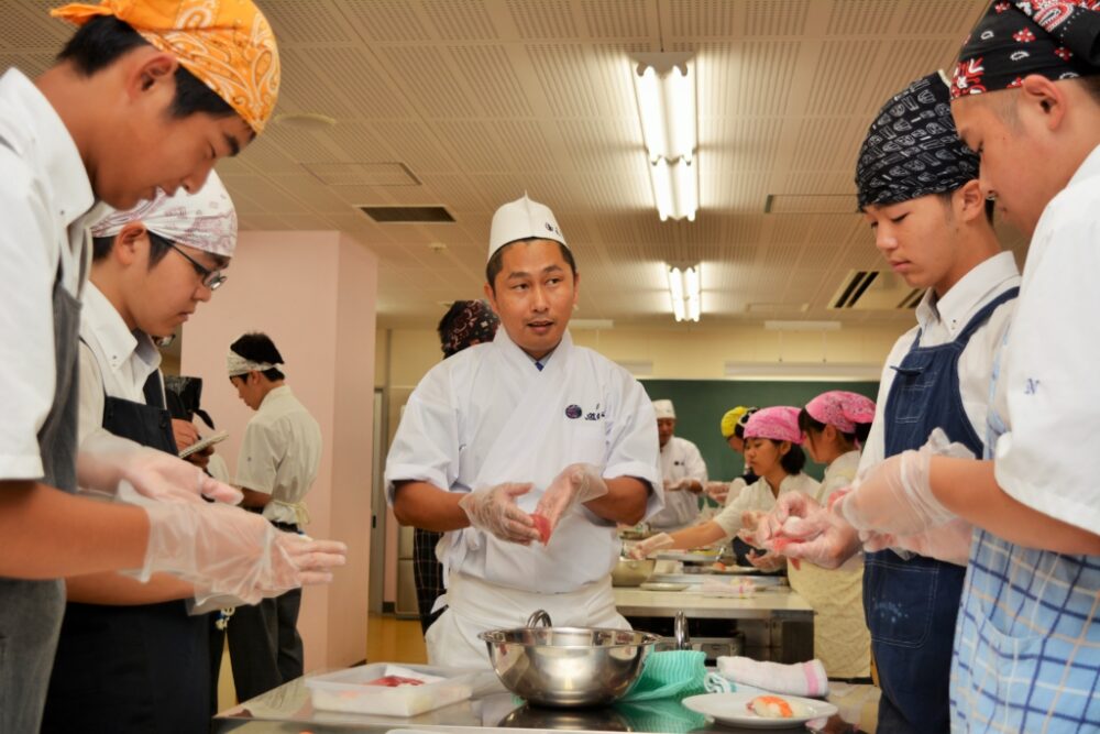 生徒たちは「難しいけど、面白い!もっと握りたい!将来は鮨職人になりたい!」など、楽しそうに握っていましたが、実習後の自分が握った鮨を食べている時も楽しそうでした。