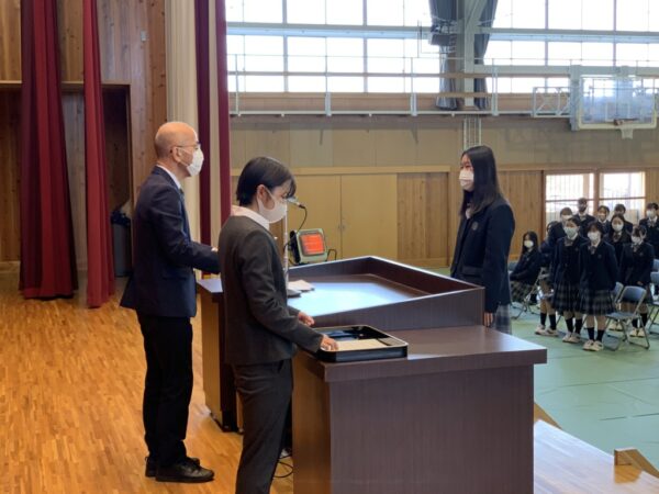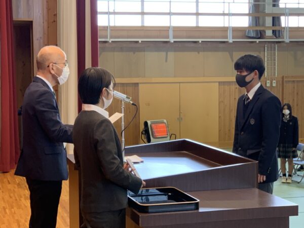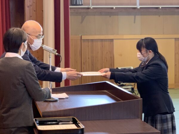 2月25日(木)3年生に対して年間皆勤賞及び精勤賞の表彰が行われました。