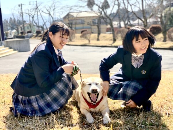 スクールドッグのアンディ君とカール君も今日は生徒たちと一緒に写真撮影を行いました。
