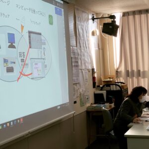 令和3年度から御殿場西高校のGIGAスクール構想であるGN-EdTechの準備が着々と進行中です。 2月19日(金)授業支援アプリの活用研修会を行いました。勝又幹江先生に講師をしてもらい、1年α組の生徒と一緒に使い方を学びました。生徒が遊び感覚でどんどん使っていくのに対し、大人は苦戦…笑やはりデジタルネイティブには敵わないのか…。いやしかし、それでもやるんです!生徒に教えてもらいながら、みんなで成長するんです!教師も生徒もICTはみんなでアップデートしましょう!
