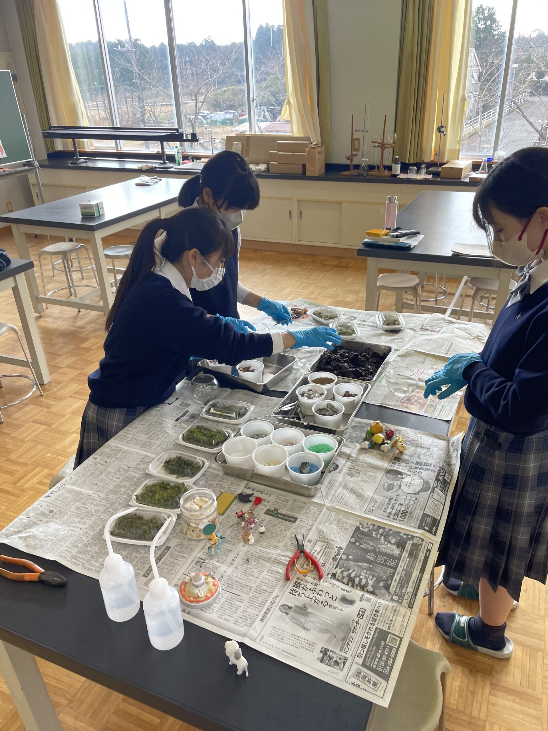 今年の3年生特進理系コースの生物選択者たちが、学年の締めくくりとして素晴らしい思い出を作り上げました。彼女らは一人一人がAAC(Ask, Acquire, Create)サイクルを活用し、高度な技術と熱意を込めてコケリウムを制作しました。