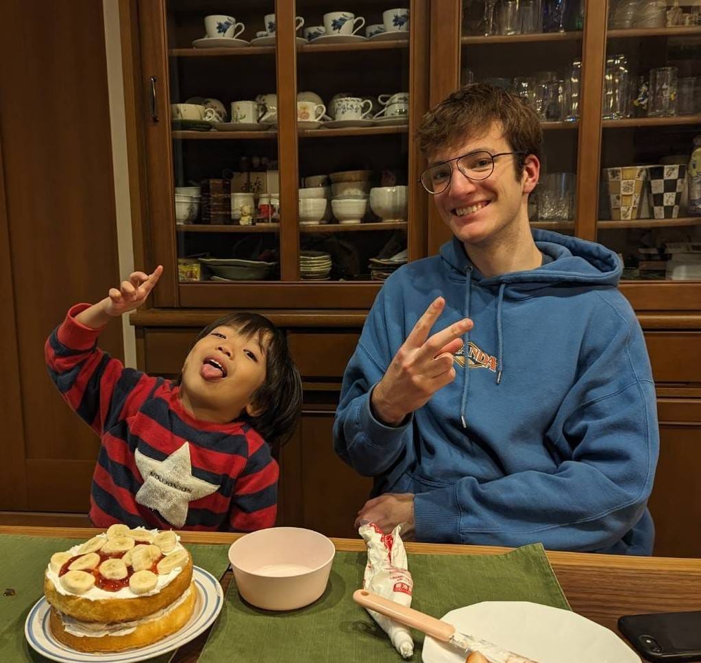 ホームステイ中、かわいい弟、ヤスと一緒に遊ぶのが一番愉しい時間でした。時折疲れることもありましたが、彼はいつも私に笑顔をくれて、子供の頃から憧れていた兄の経験をさせてくれました。(トム)