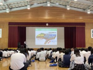 本日の4時間目に防災講和が行われ、専門家の先生から、災害時に必要な知識や対策について学びました。