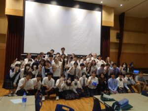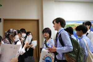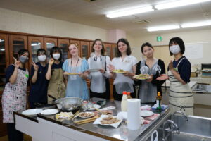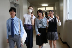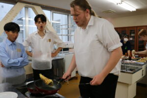 御殿場市の姉妹都市、アメリカのオレゴン州ビーバートン市の学生が来校し、本校生徒と交流を行いました。まずは生徒案内での校内見学、その後英語の授業で交流、一緒にお好み焼きも作りました。初めて作るお好み焼き、フライパンでひっくり返すのが難しかったですが、おいしく作ることができました!