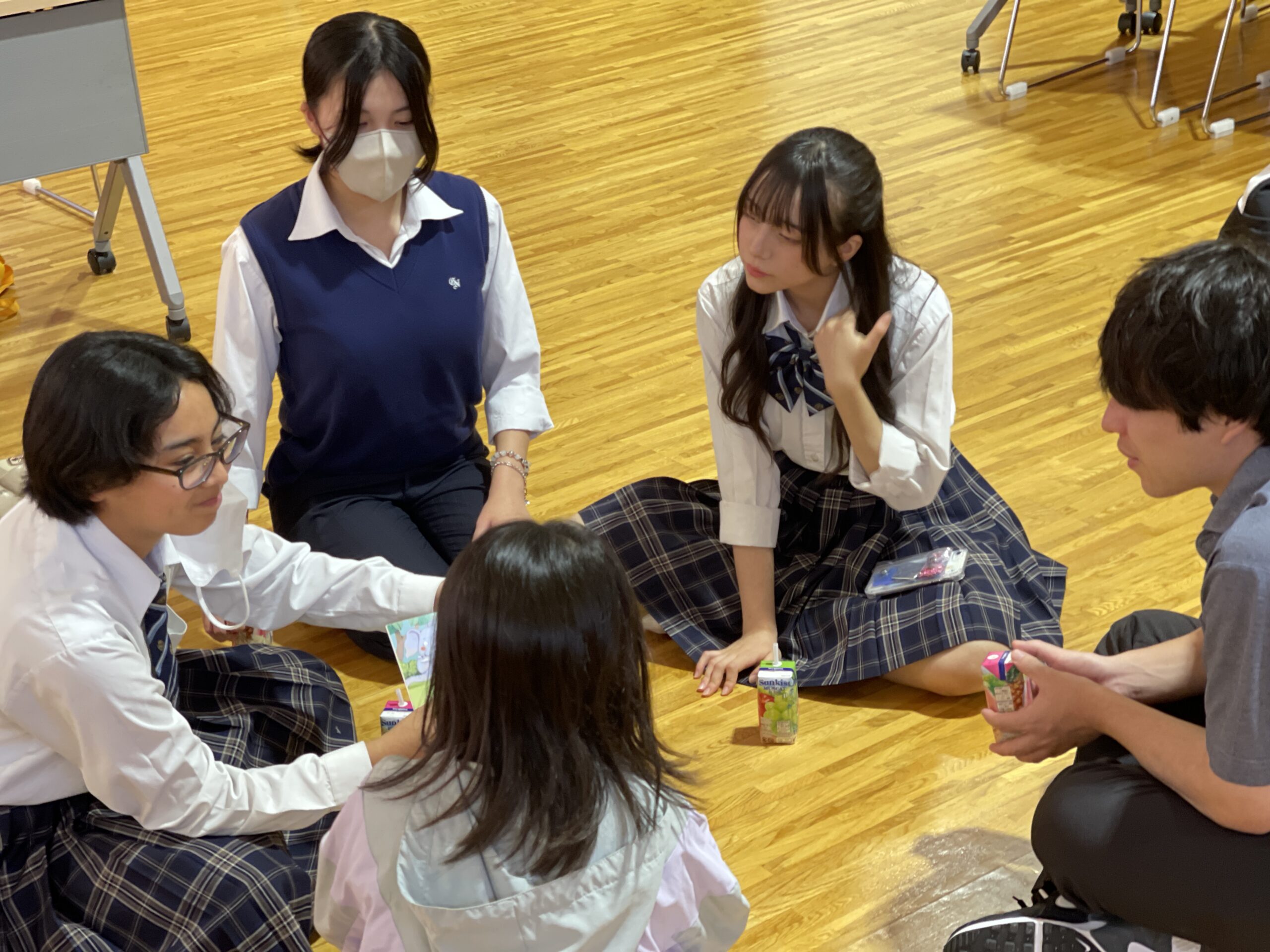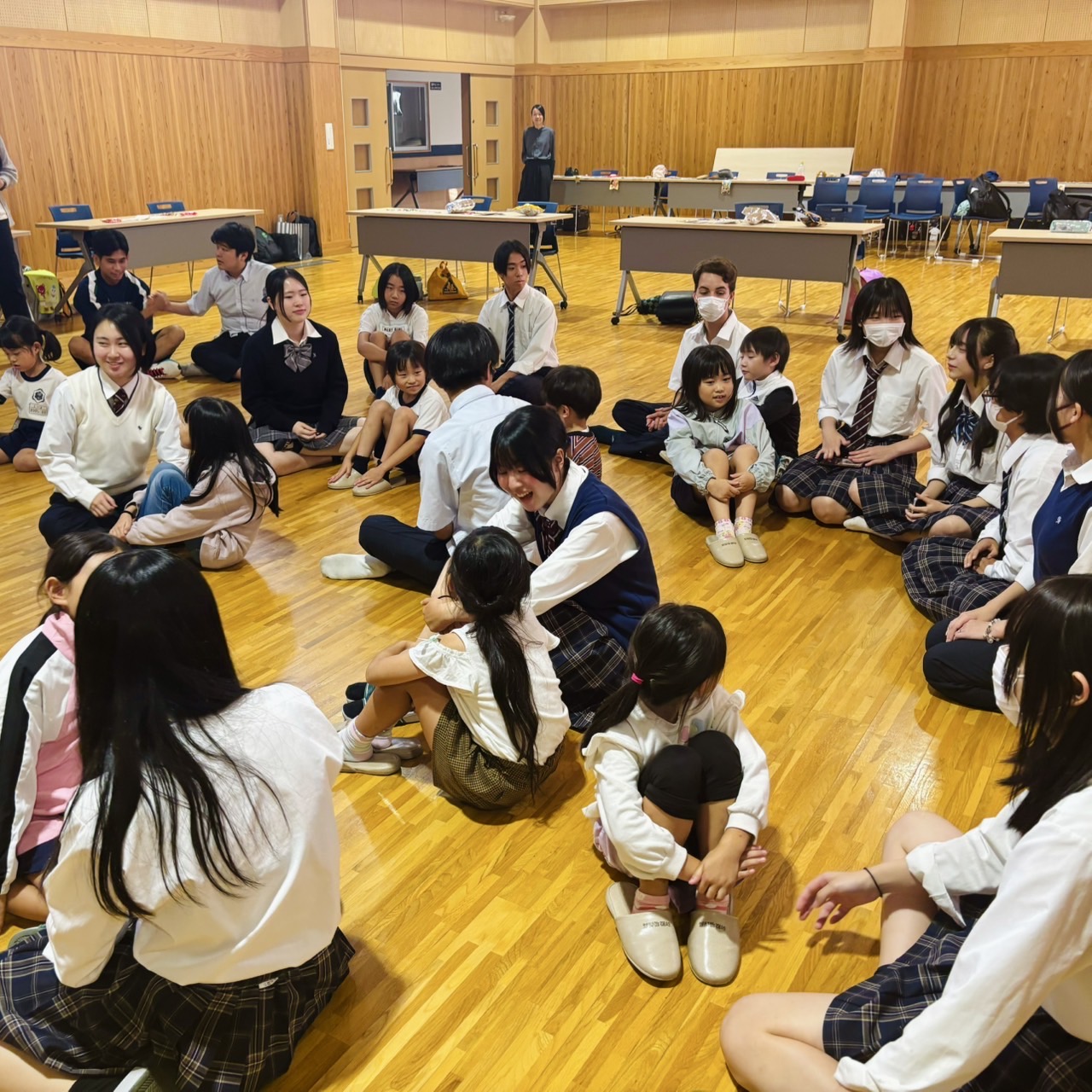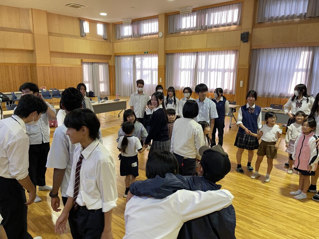 スカイホールに入ってくると暖かい拍手で迎え、小学生たちの笑顔に高校生たちも自然と笑顔が溢れていました。