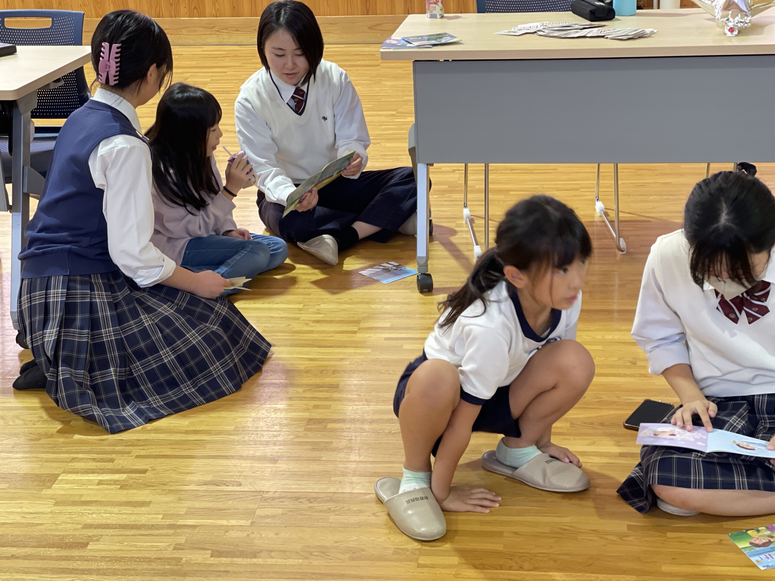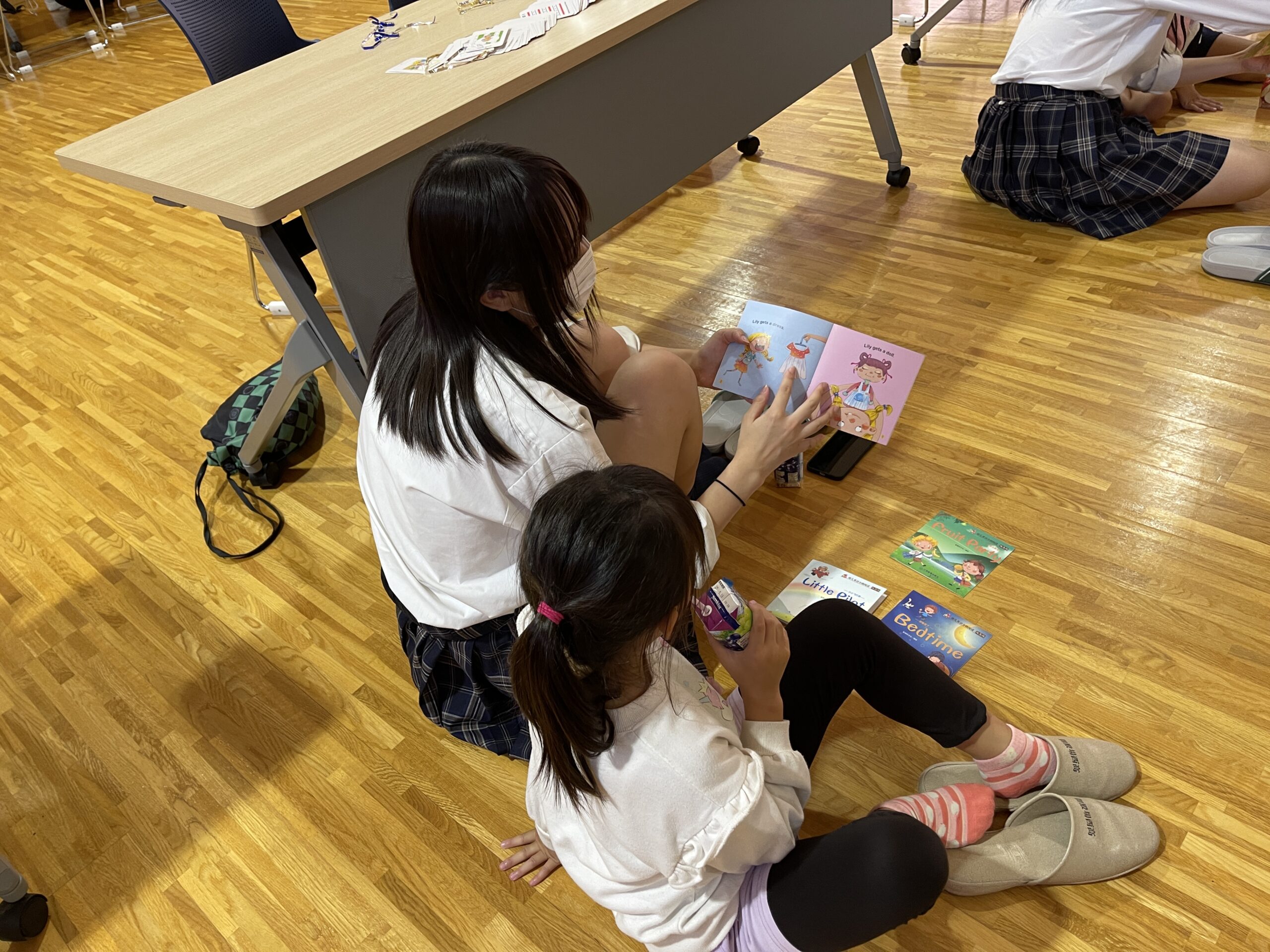 英語を使った交流はとてもシンプルなやり取りから始まり、絵本の読み聞かせ活動などが行われました。