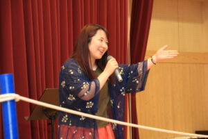 6月22日(金)、第13回ふじいばら杯「詩のボクシング」御西高大会が開かれました。オープニングセレモニーとして留学生3名による日本語朗読が行われ、早口言葉をテーマにした内容で会場を沸かせました。