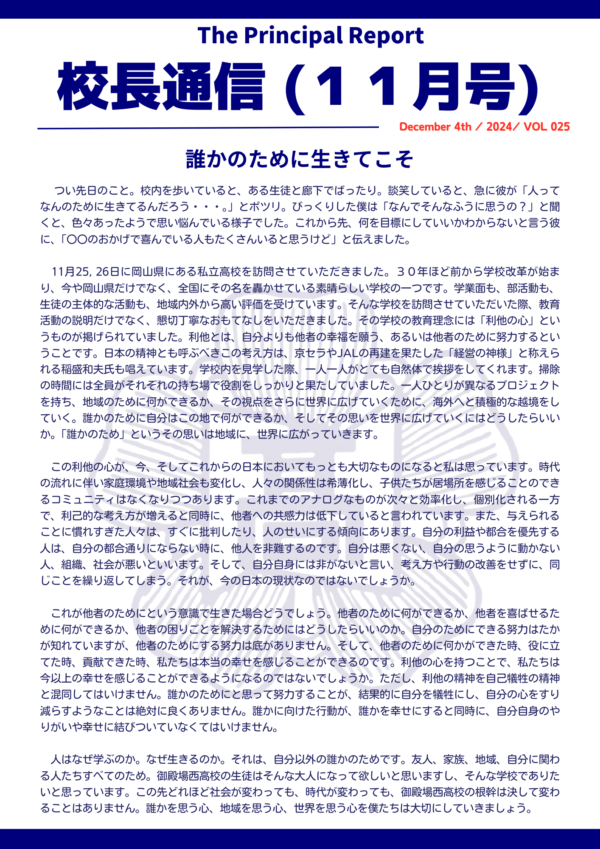 過去の「校長通信」をご覧になりたい方は、以下をクリックしてください。