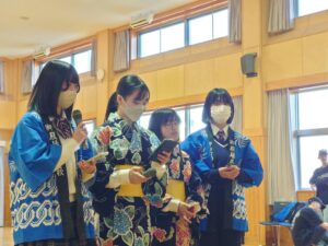 本校はアニメソングでのブレークダンスと浴衣や法被を身につけて「もったいないばあさん音頭」を披露し、日本の伝統文化、現代文化を紹介しました。それぞれの代表校が、その国の文化を表す歌やダンス、詩を披露し合い、お互いの文化に対する興味や関心を高めました。