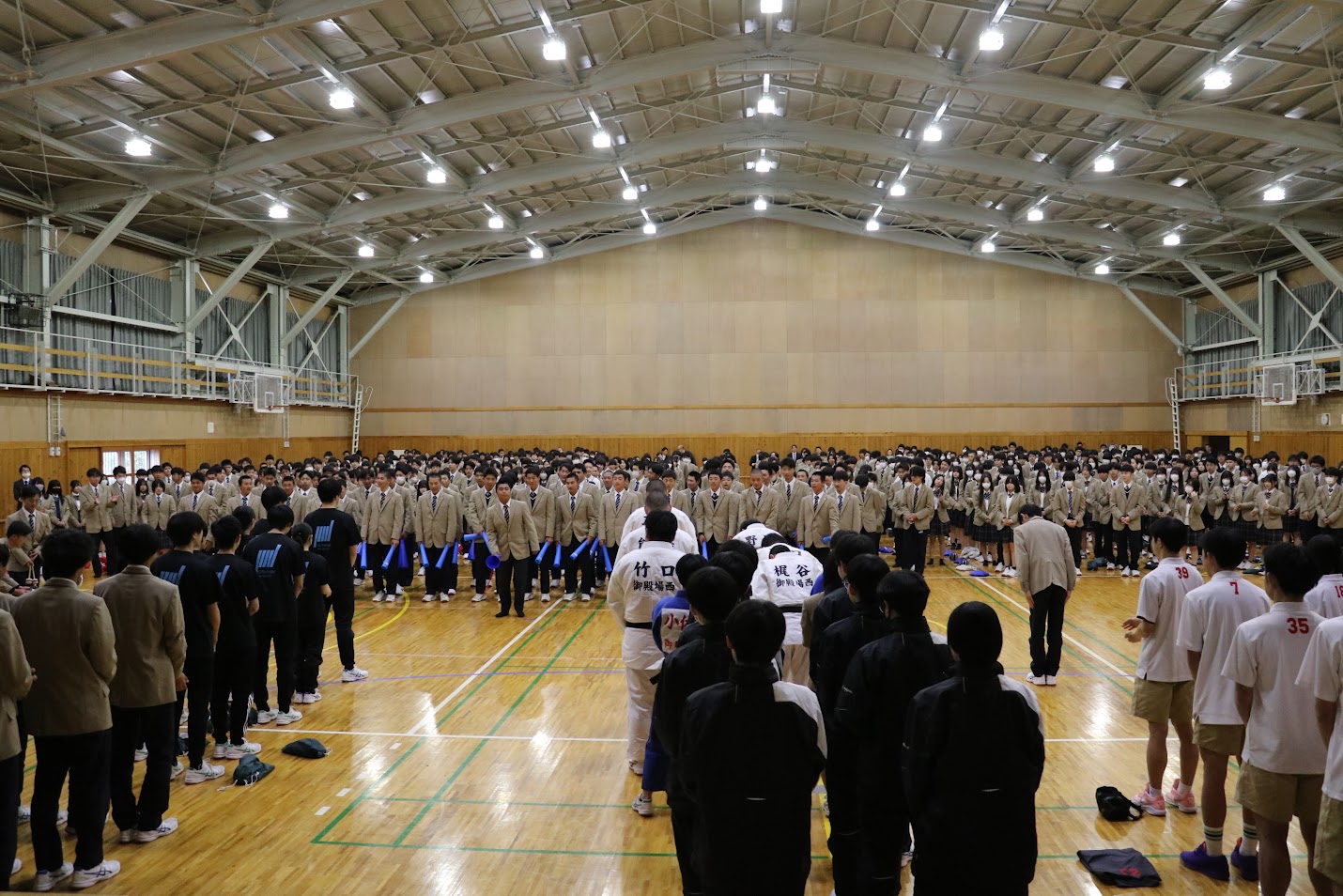 その後、野球部による応援が行われ、全校生徒によるエールが送られました。
