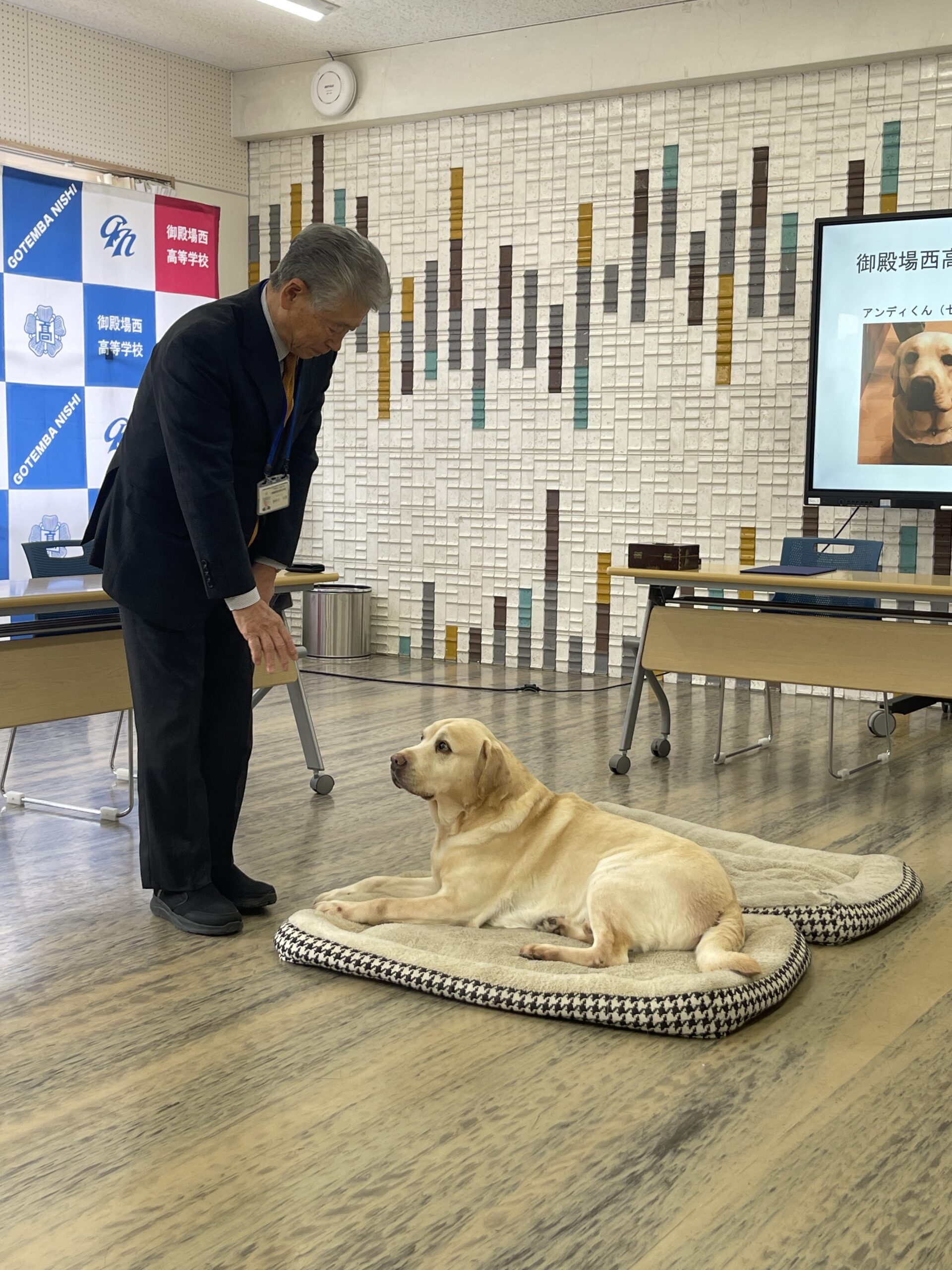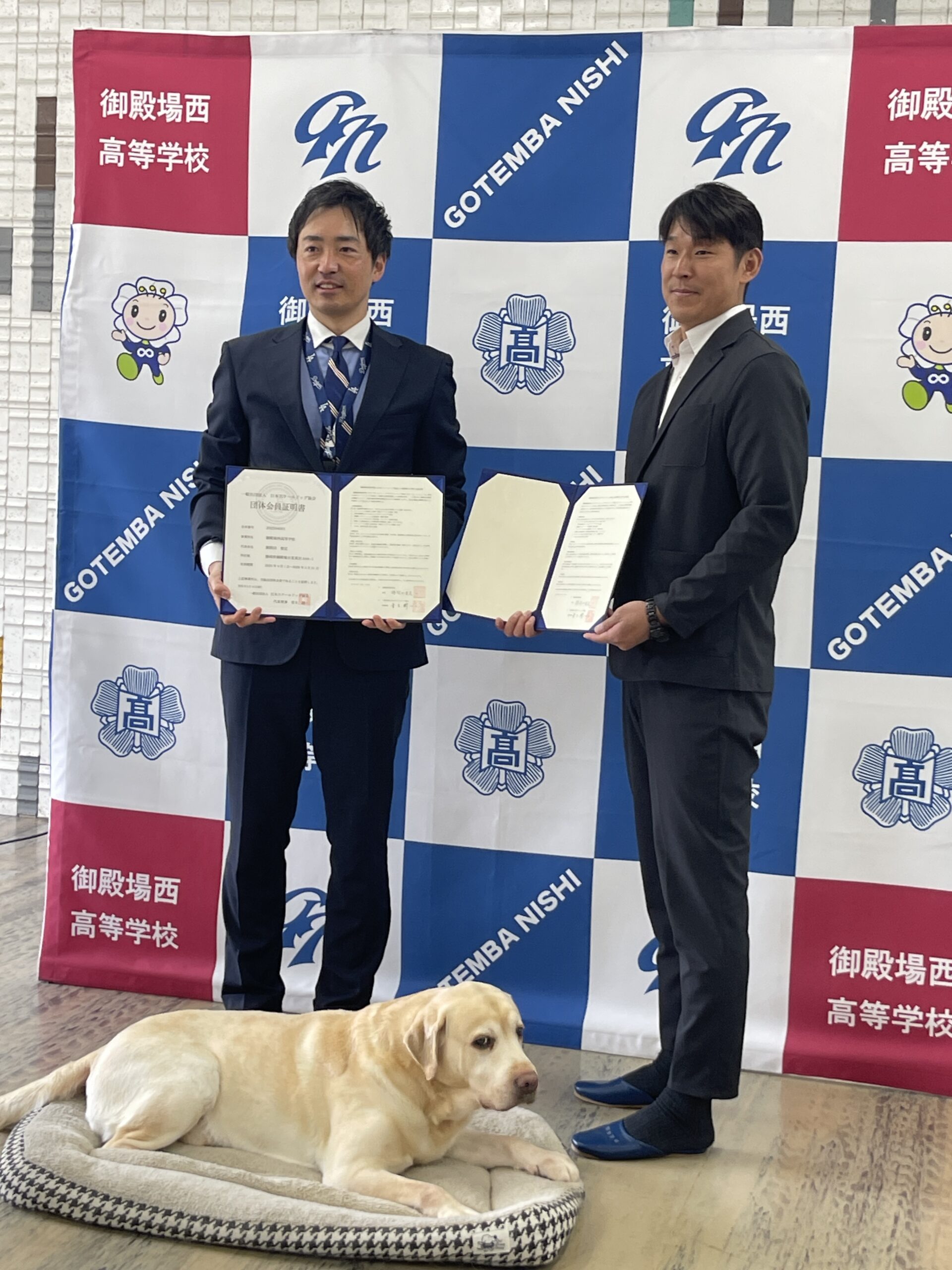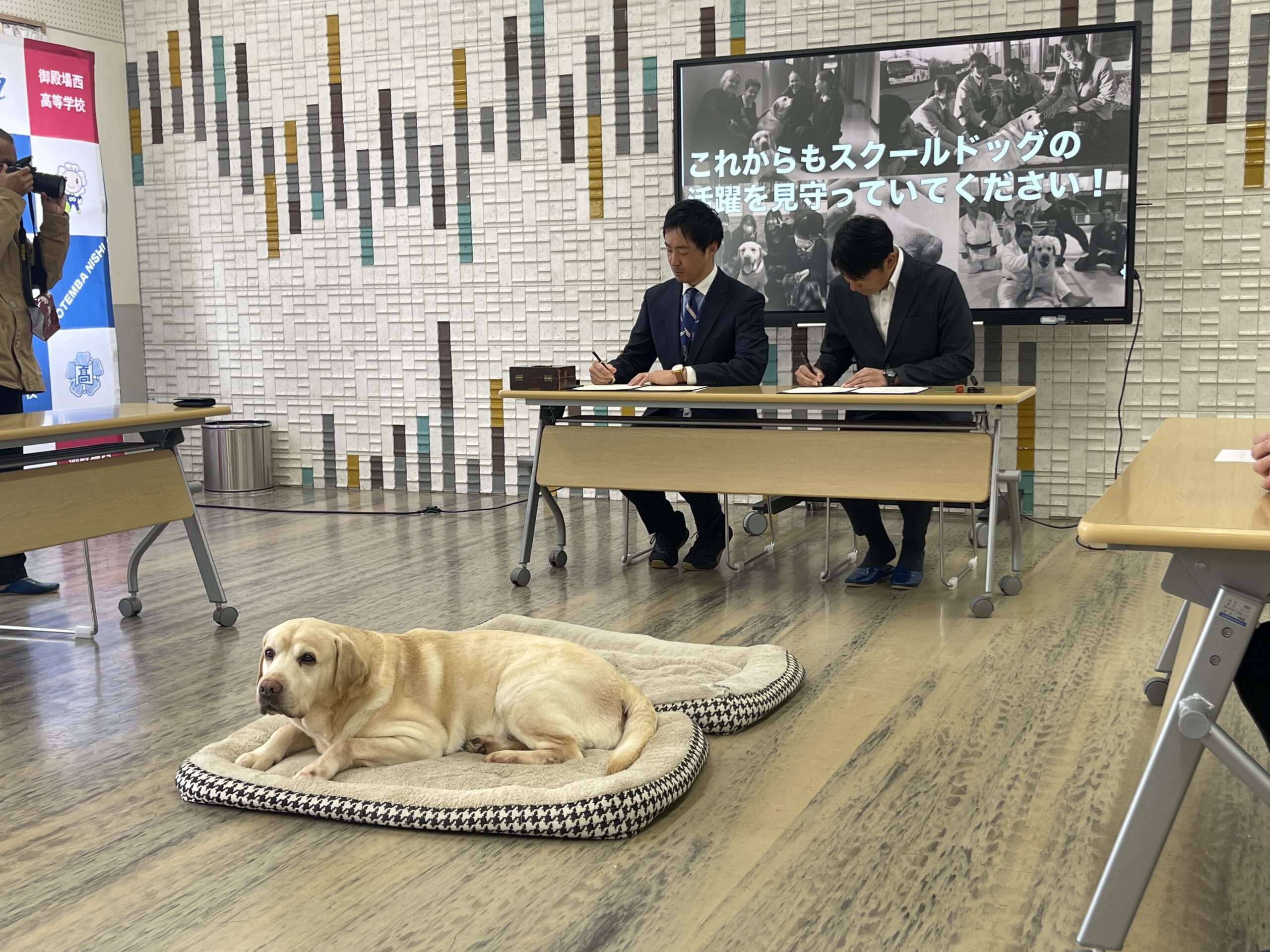 5月14日(水)御殿場西高等学校は、動物介在教育事業の普及と支援を行なっている日本スクールドッグ協会(岡山県西粟倉村、代表理事:青木 潤一⦅あおき じゅんいち⦆)と連携協定を結びました。