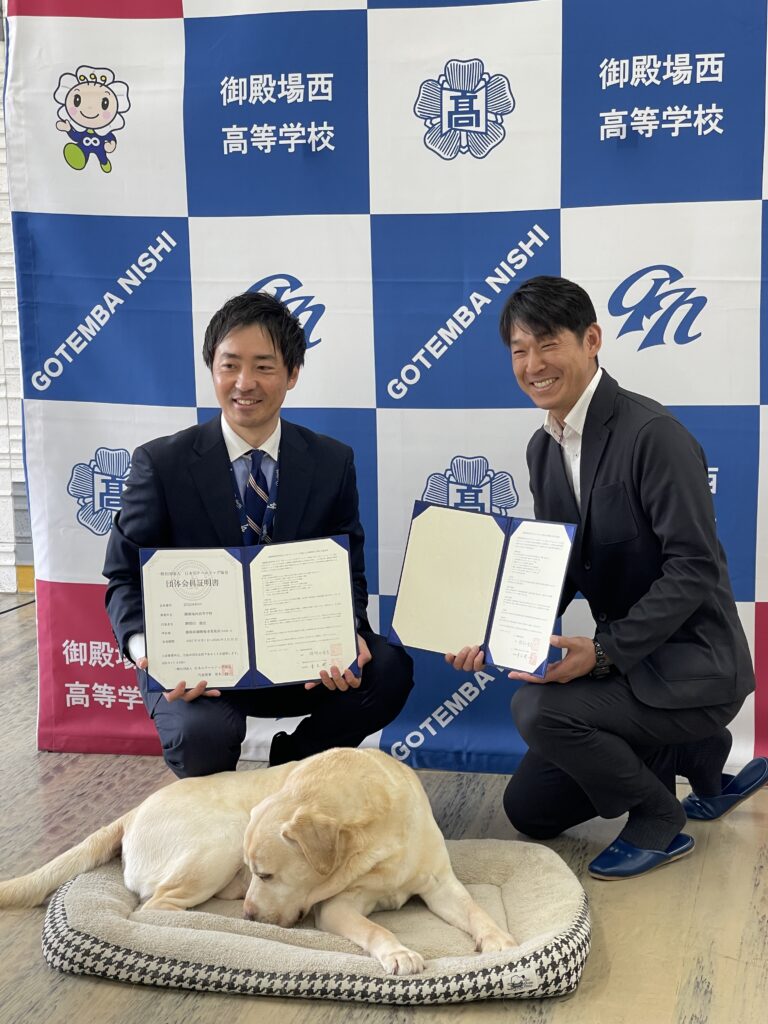 5月14日(水)御殿場西高等学校は、動物介在教育事業の普及と支援を行なっている日本スクールドッグ協会(岡山県西粟倉村、代表理事:青木 潤一⦅あおき じゅんいち⦆)と連携協定を結びました。