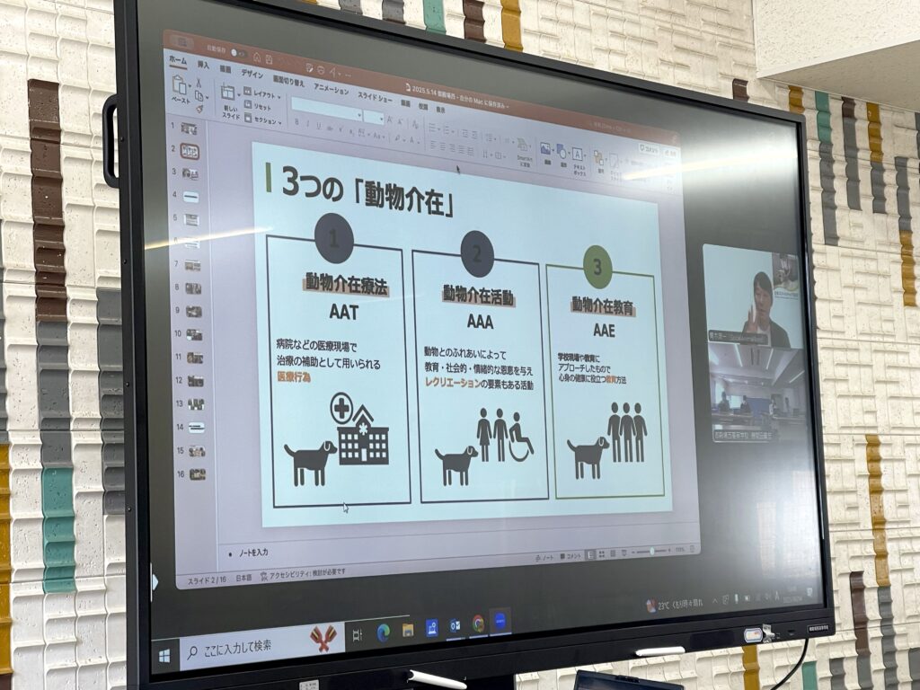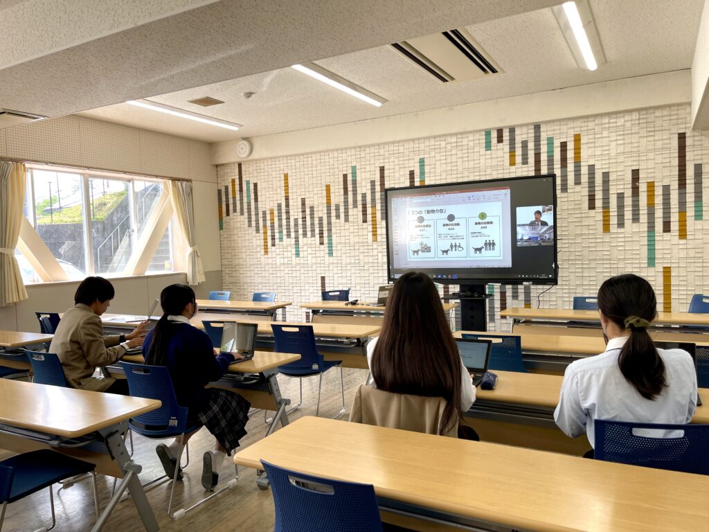 「地域活性化プロジェクト」ゼミでは、御殿場市議会議員の横山大さんをお招きし、地域課題の解決策について、議員の目線でさまざまなアドバイスを各グループに送ってくれました。また、スクールドッグ班は、日本スクールドッグ協会の青木代表とのオンライン打ち合わせを行い、意見交換と今後のプロジェクトの相談を行いました。