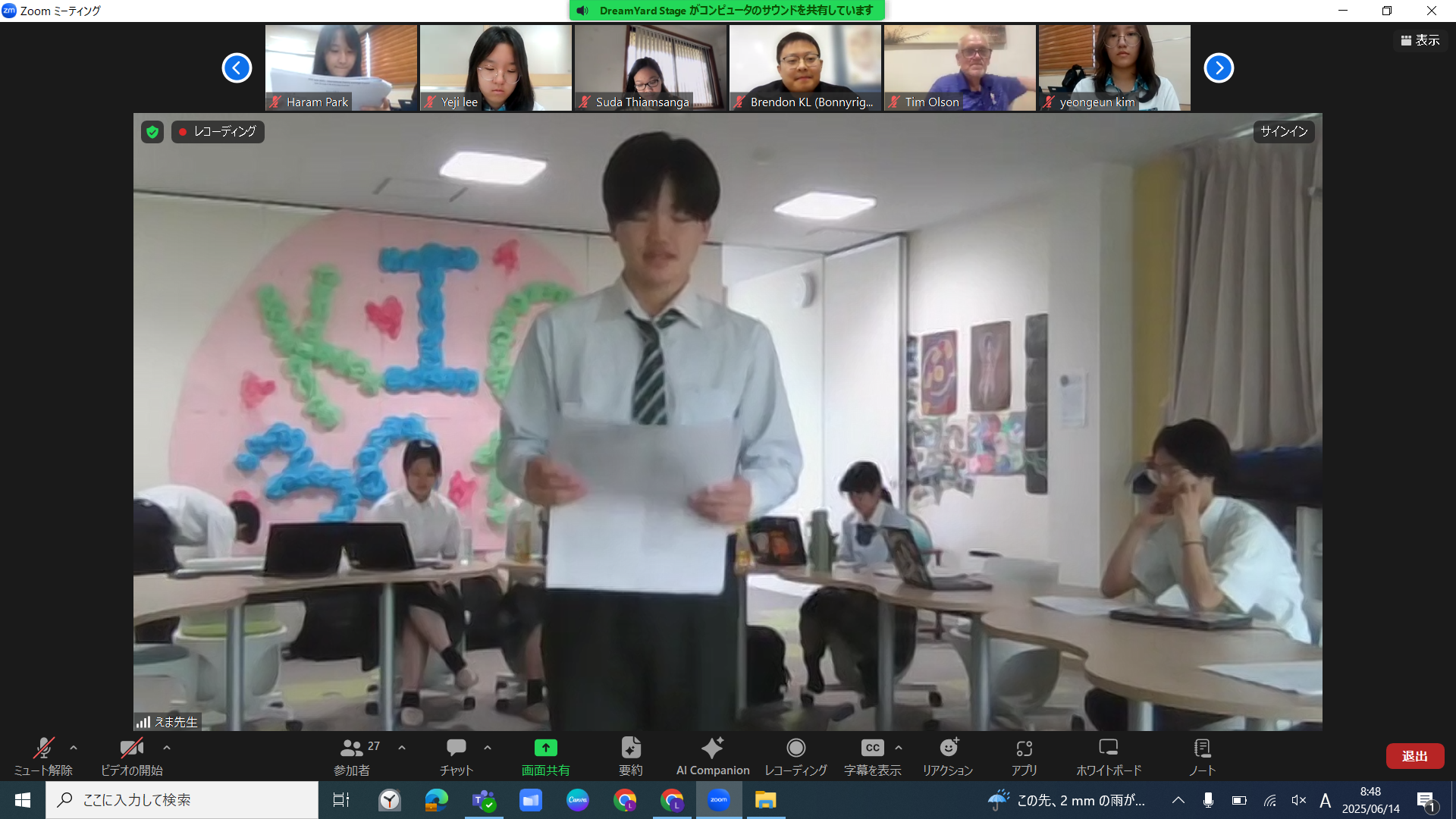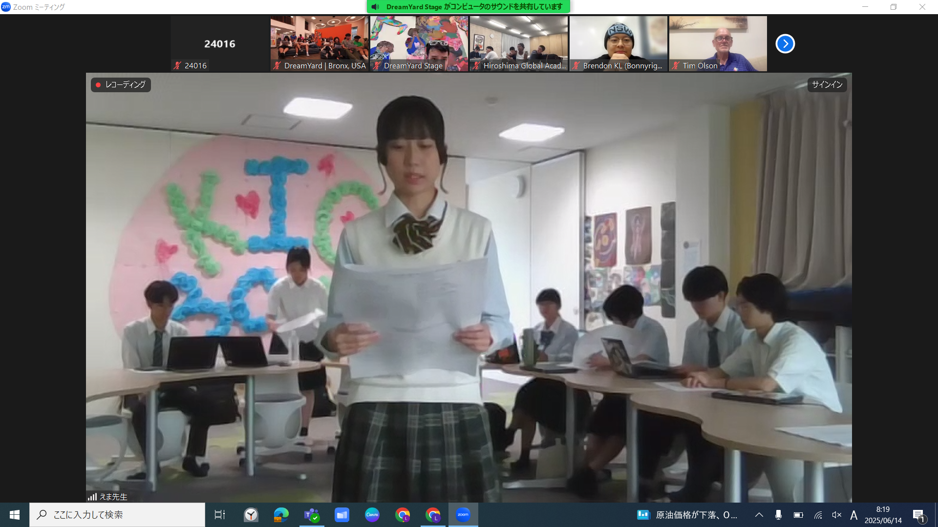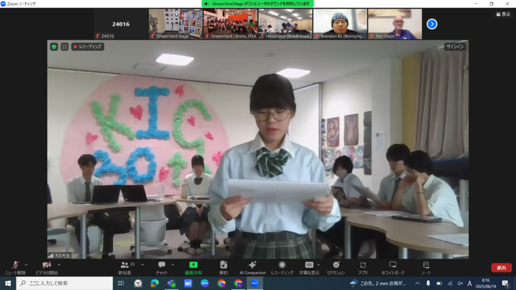 6月16日(土)国際ポエトリー交流プログラムが開催され、本校からも生徒たちが参加し、オリジナルの詩を披露してくれました。