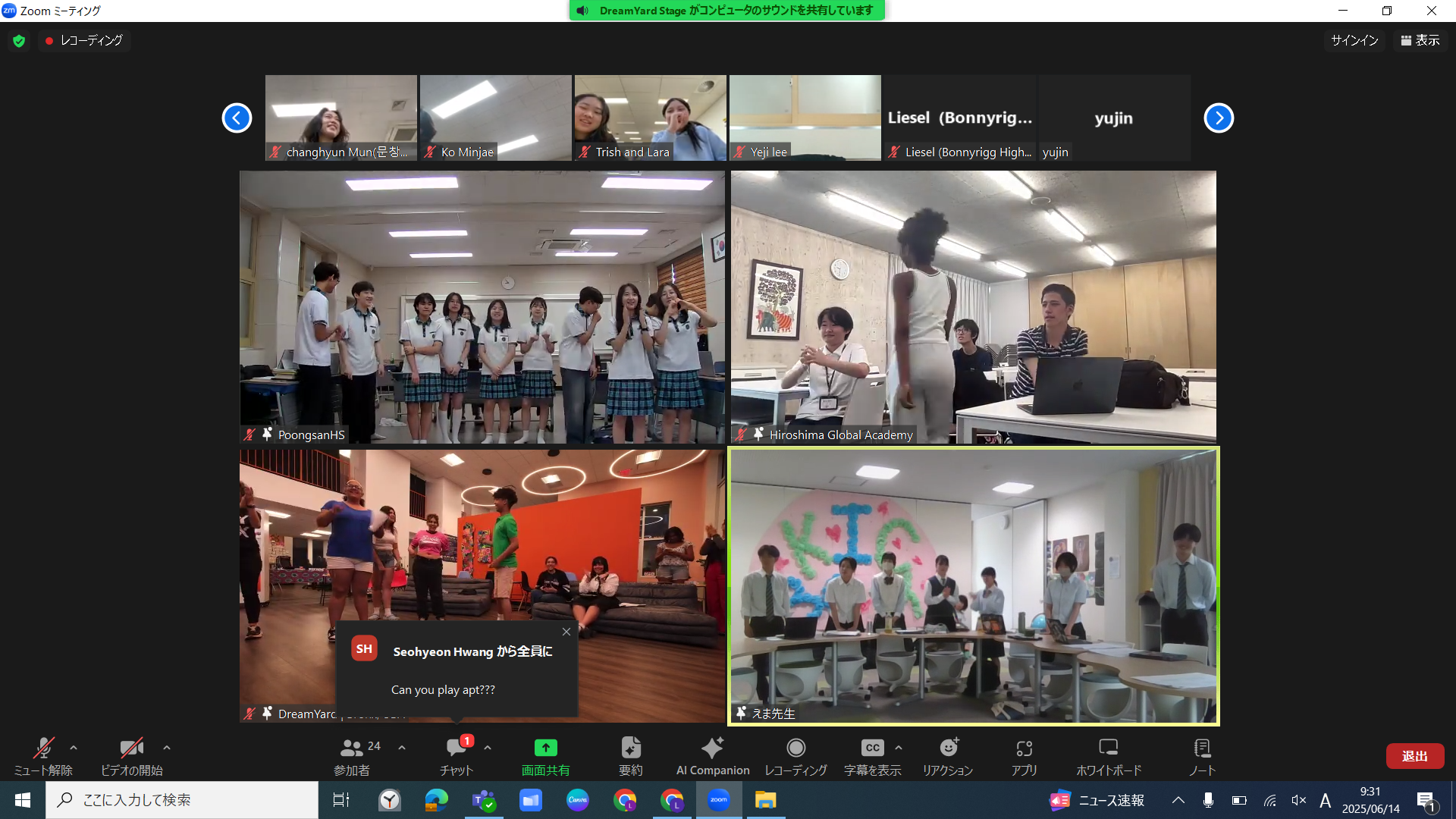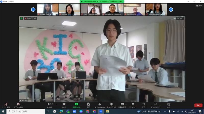 今回も、生徒たちが英語でやりとりしながら、詩の披露に加え、オンラインの画面越しに文化交流が行われ、とても充実した時間となりました。