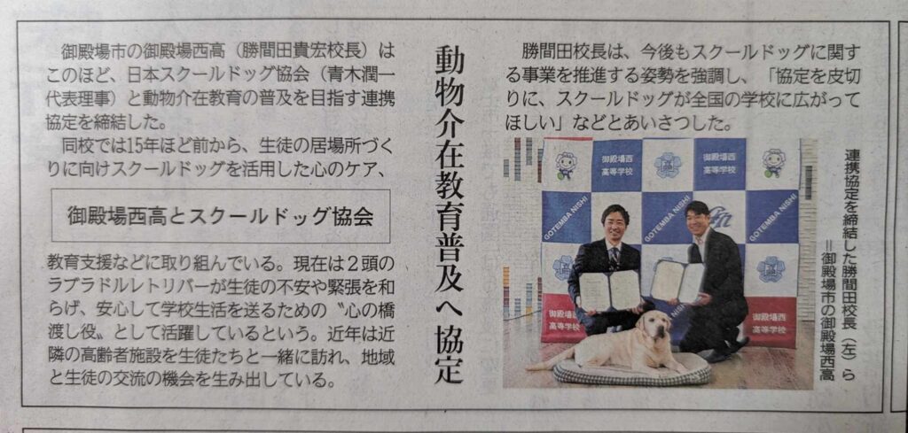【生徒支援】スクールドッグについて静岡新聞と読売新聞に掲載していただきました!