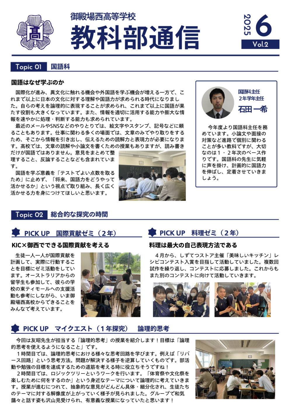 御殿場西高校のの授業や探究学習の取り組みを配信する「教科部通信」の6月号を配信しました。