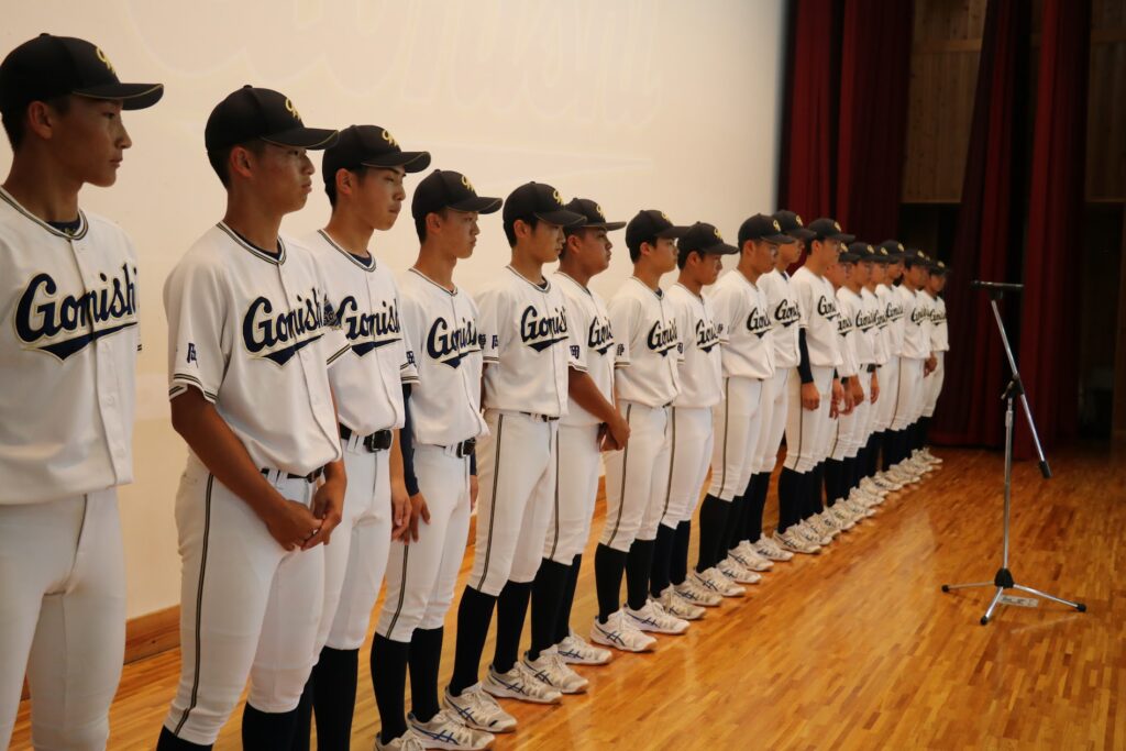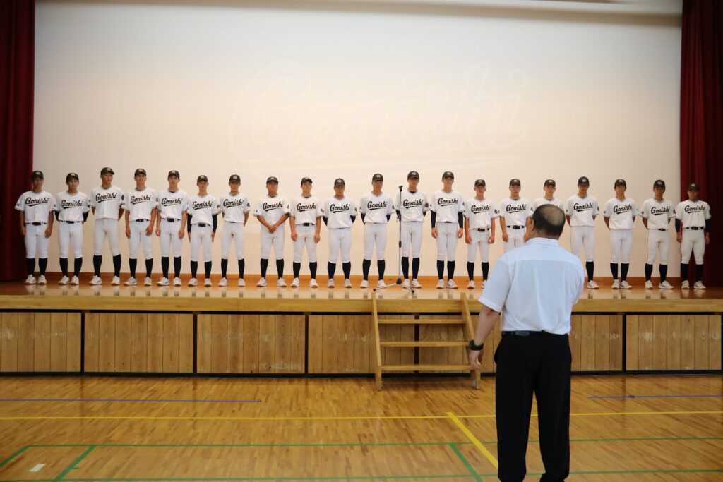 野球部監督の竹内先生から、主将の名波くんからそれぞれ決戦に向けた決意が語られました。