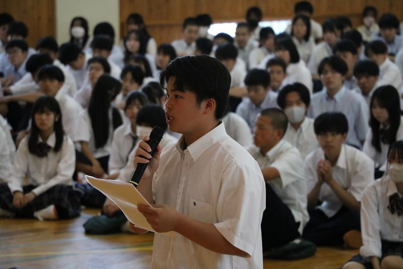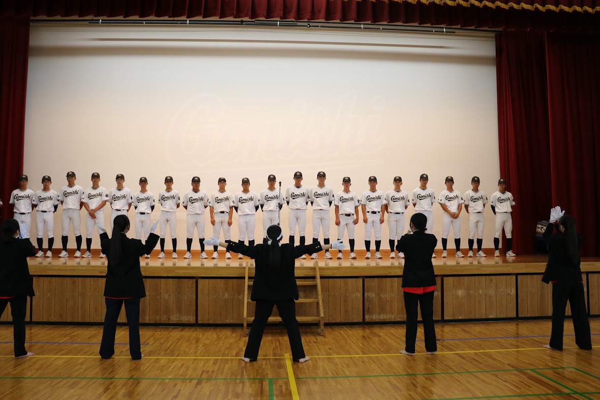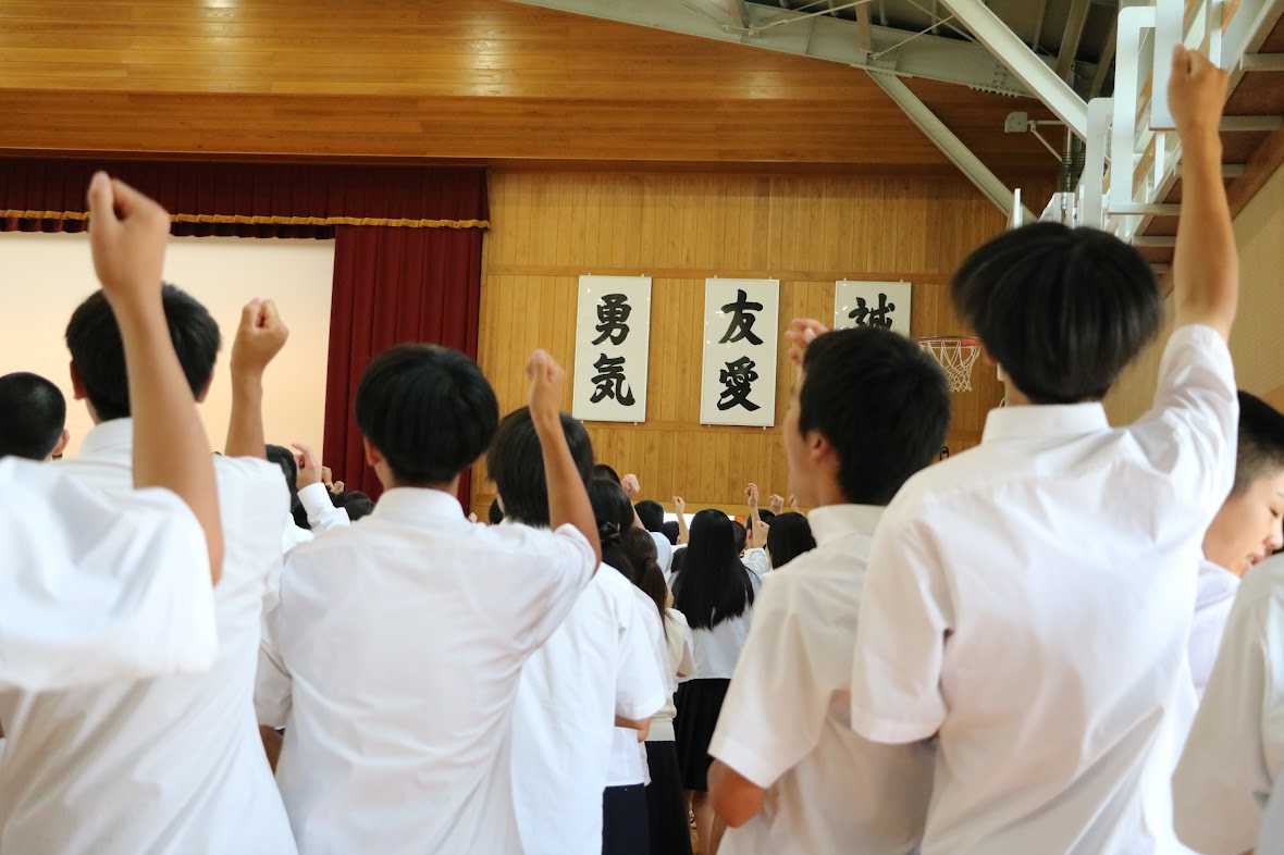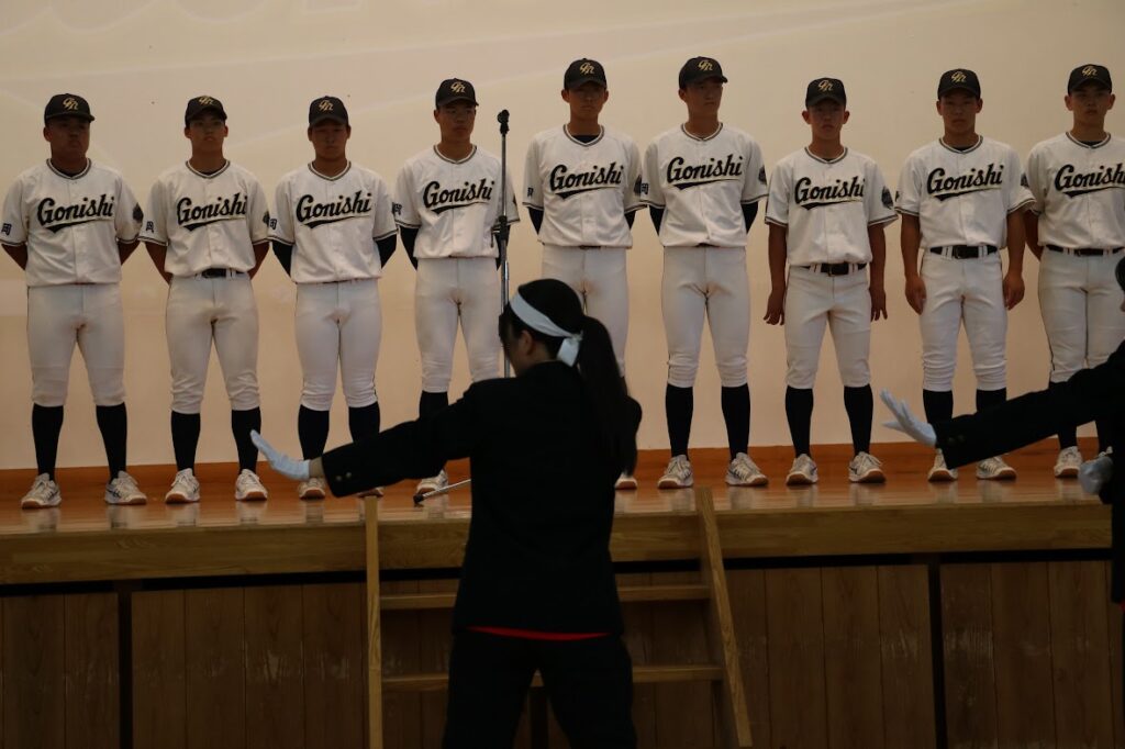 生徒会長の漆畑くんからの言葉、光高教頭からの激励の言葉を受け、野球部の生徒たちも来たる決戦に向けて、とても良い表情で壇上で立っていました。