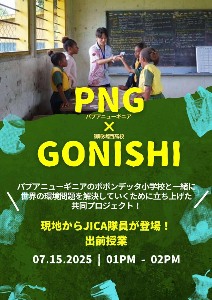 これは、パプアニューギニアにある小学校に勤めている日本人教師の鈴木先生とともに、本校の生徒や、近隣の小中学生を交えて、お互いの学校文化の紹介、日本とパプアニューギニアの文化の紹介等を通して、相互理解を深めるとともに、貧困、ゴミ問題、質の高い教育といったSDGsに関連する課題解決への入り口を作るというものです。