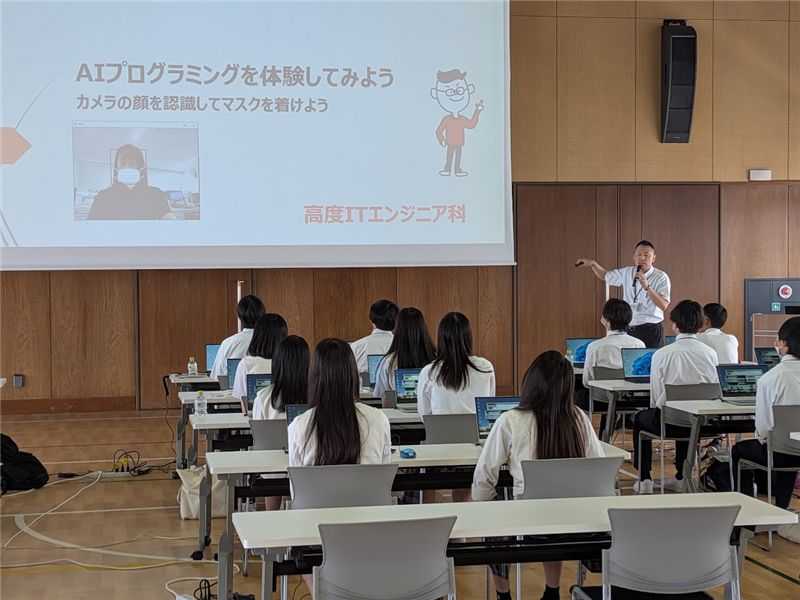 2時間目は「AIを使って、自分のスマホに顔認証」を作成しました。近年、急速な進化を続けるAIに実際に触れ、自分にとって最も身近なツールの一つであるスマホで学ぶ体験をすることで、より身近にAIを感じる機会となりました。