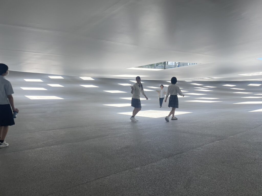 その後KAIT広場・工房を見学させていただきました。高校にはないスケールの施設に生徒が上を見上げて歩いていました。スポーツにも力を入れており、横浜スタジアムを参考にしたグラウンドなど沢山の施設を見学させていただきました。