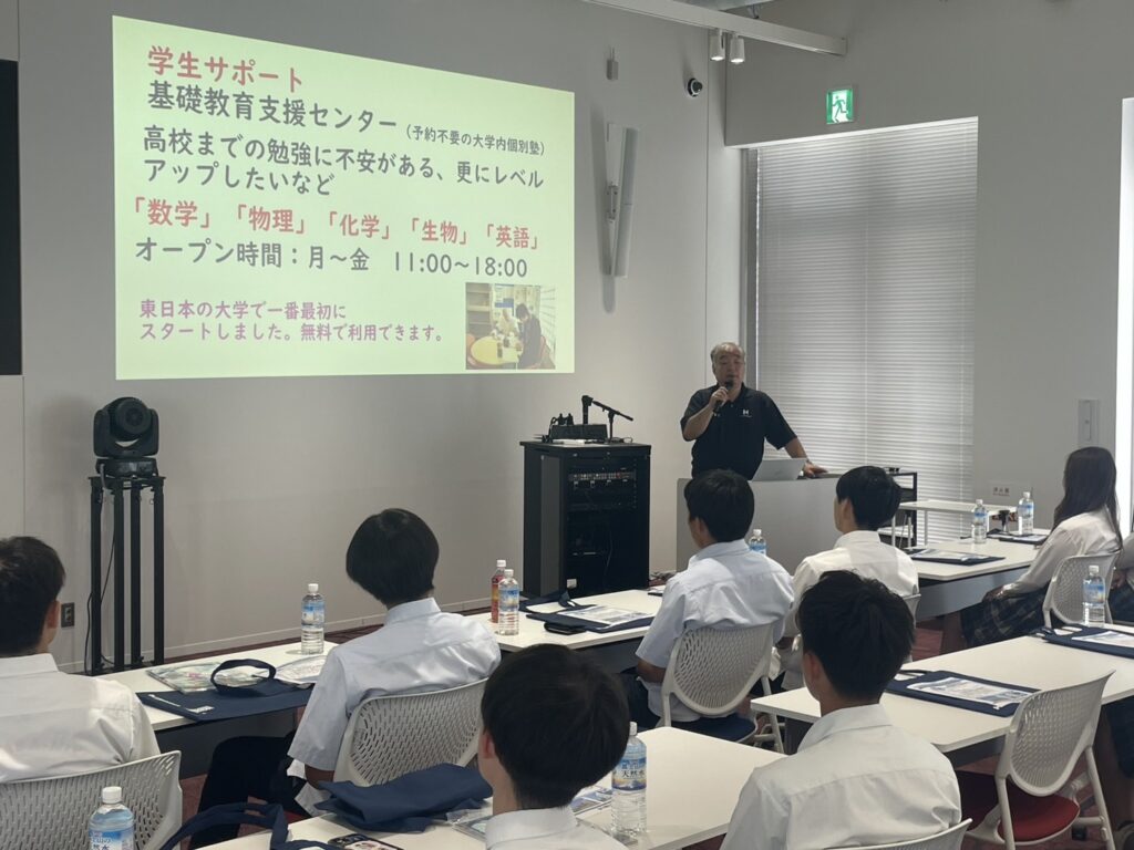 神奈川工科大学では、大学の学びの概要説明を受け、受験方式や大学のシステムについて多くのことを学びました。大学は100分授業という言葉に生徒は驚愕をしていましたが、2年生の夏休みを迎えるうえで良い動機付けとなりました。