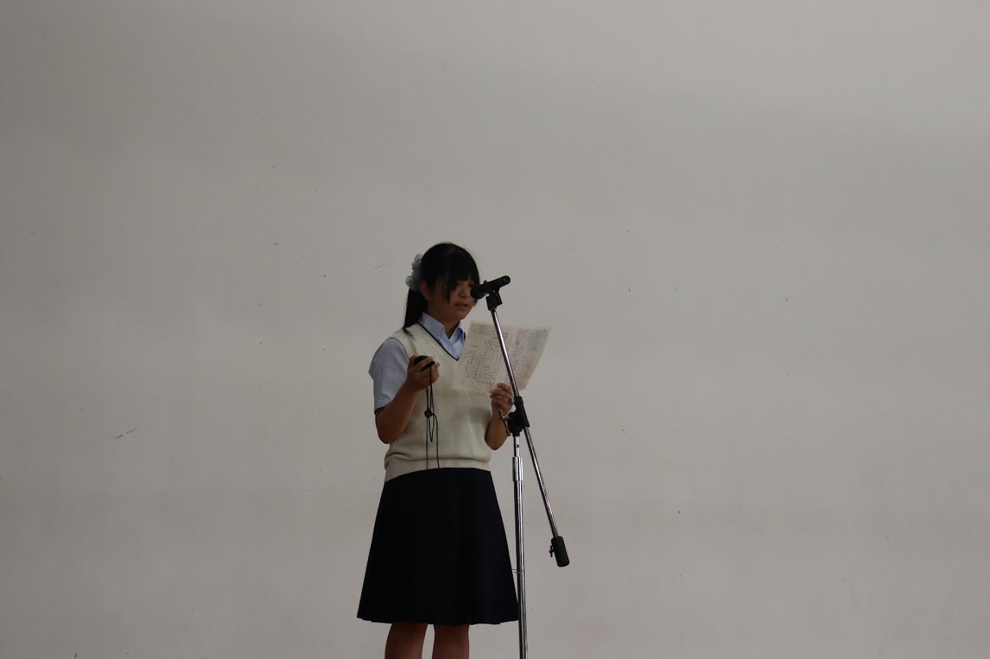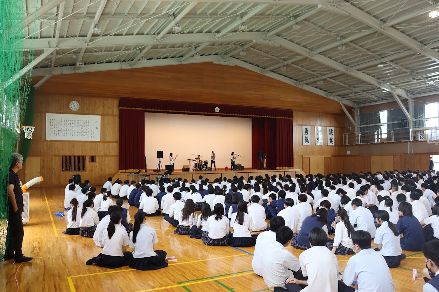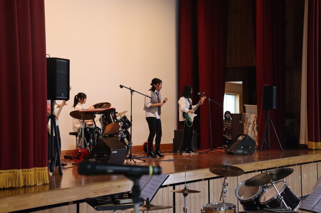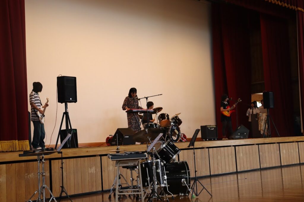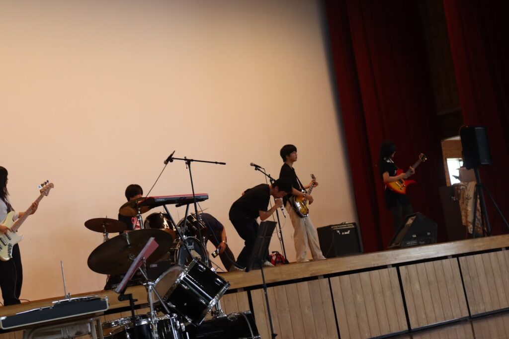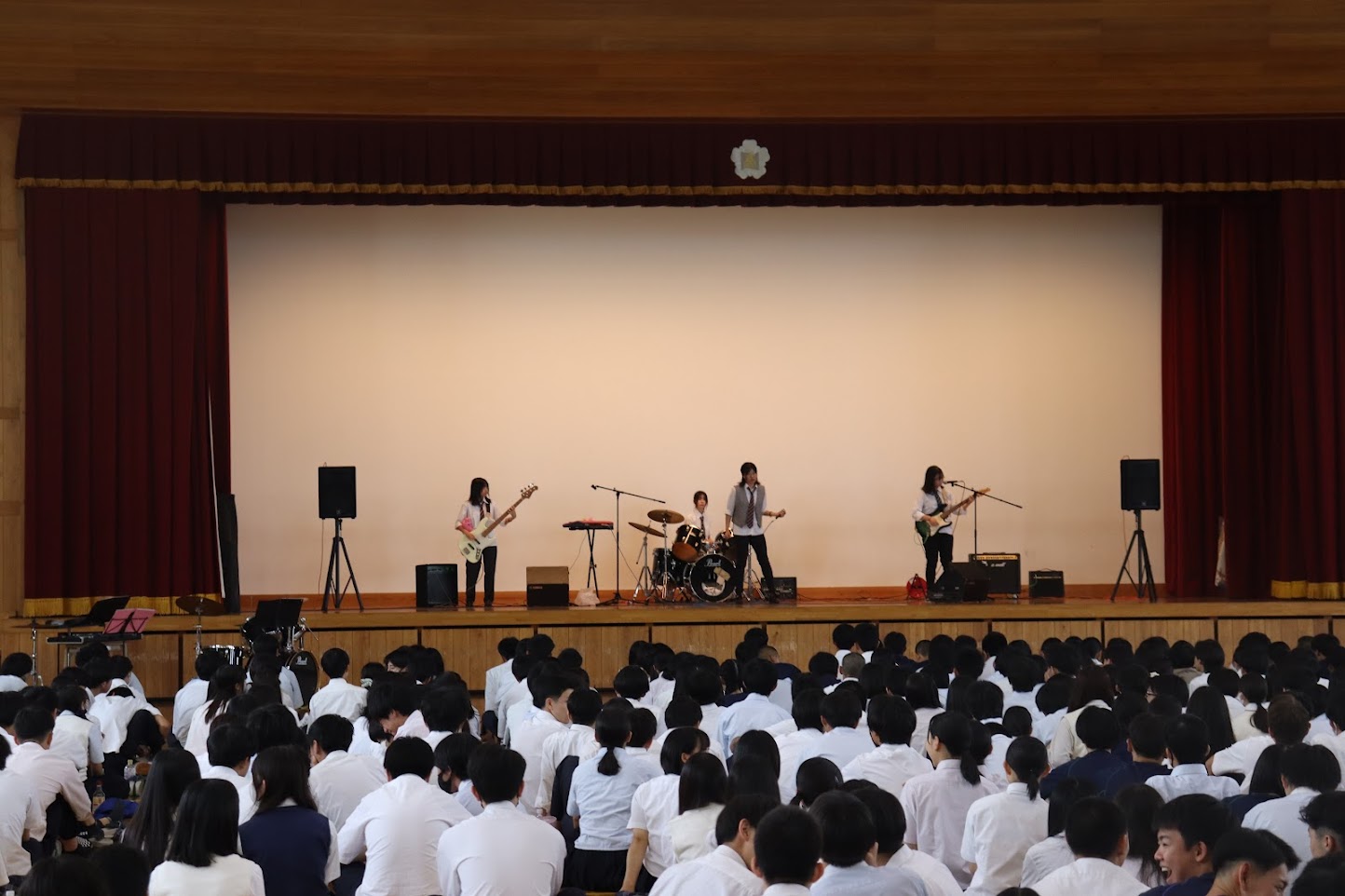 「3年生の出番が欲しい!」という声が生徒会に寄せられ、今年度は1学期の終わりに文化部の発表会を開催し、吹奏楽部、軽音楽部、ダンス部、放送部といった部活動によるパフォーマンスを全校生徒の前で行いました。