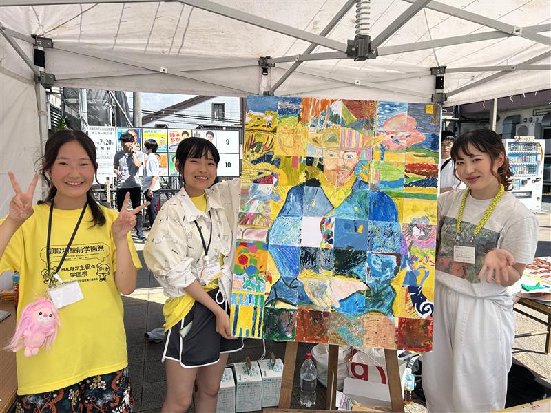 美術部は48人のゴッホ」を出展しました。来場者さんたちに絵の具とクレヨンで48ピースに色を塗ってもらい、自由な個性が集結した世界で一枚の「タンギー爺さん」ができました。8月いっぱいまで御殿場駅前の「きょてんば」に展示します。最後の1ピースを塗ってくれたのは文化祭実行委員長のタヴィシャ君。本当にお疲れ様でした!
