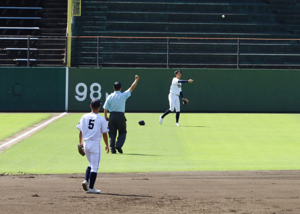 相手の強力打線に苦しむ場面もありましたが、投手の池田くんが粘りの投球で要所を抑えました。