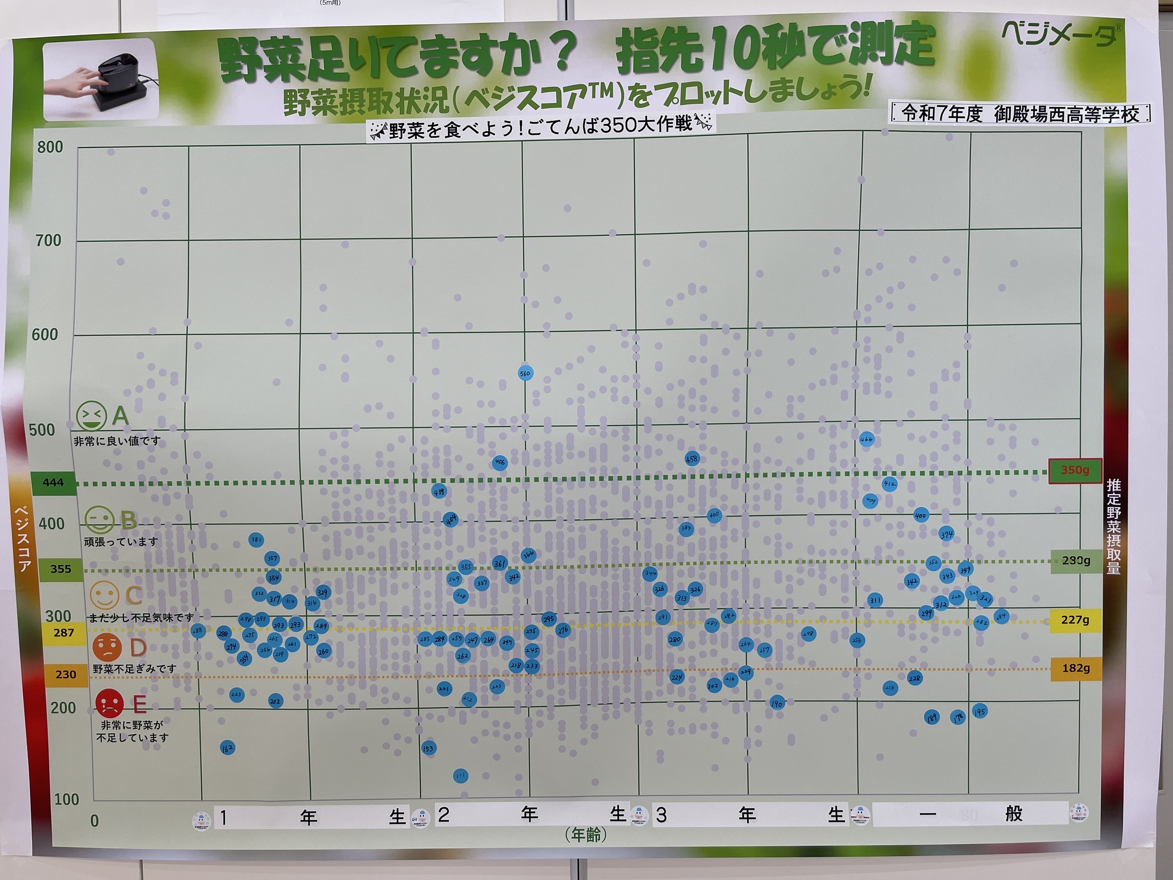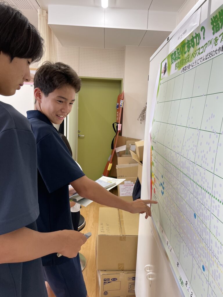 野菜の推定摂取量(17日実施)や体組成(18日実施)を友達と比較し、楽しんでいる様子がうかがえました。