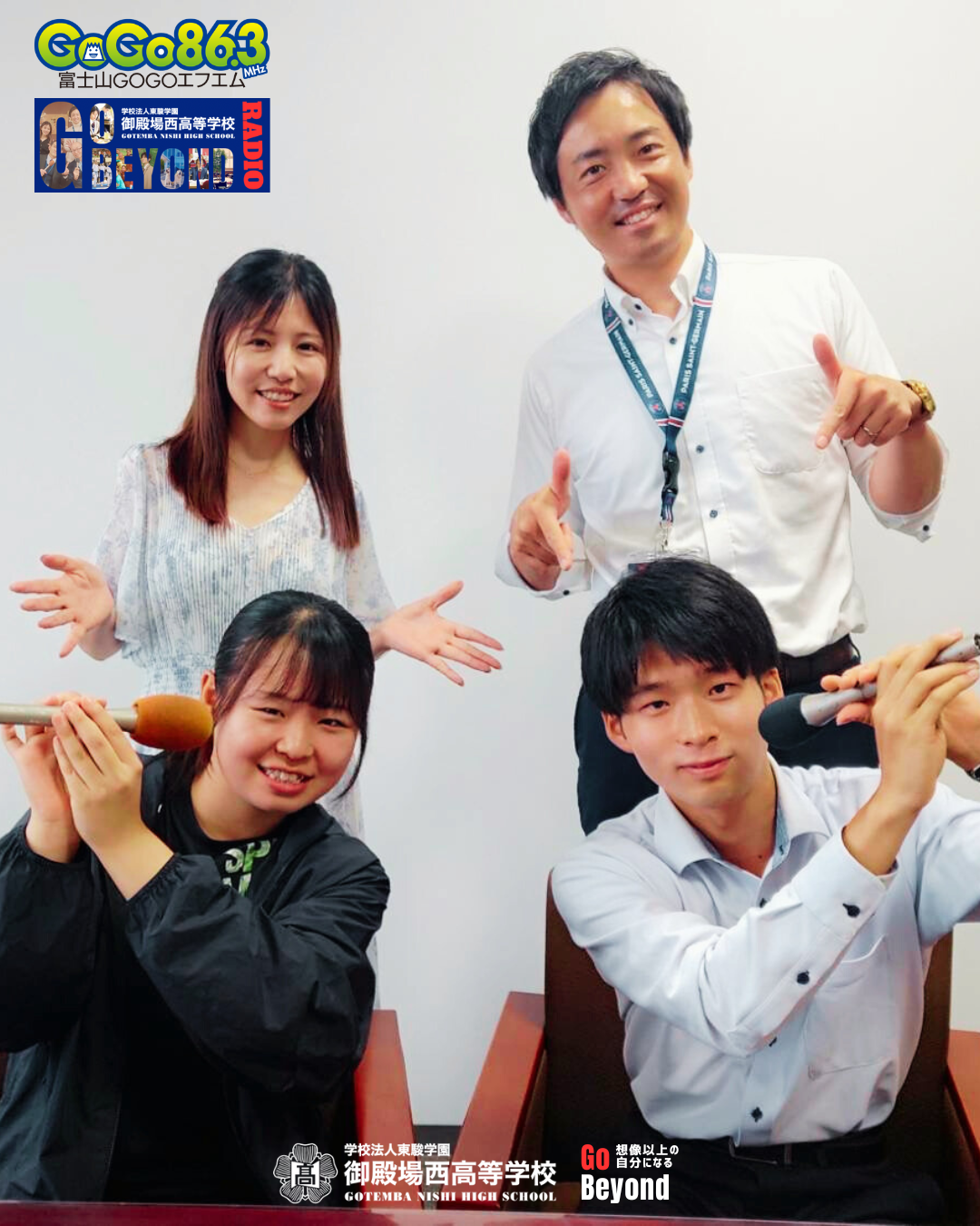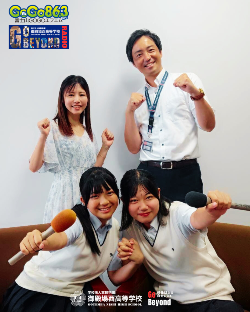 御殿場西高校の『Go Beyond Radio』は毎週火曜朝7:00から30分間の放送となります。本放送は第1、第3火曜日となりますので、ぜひご視聴ください。