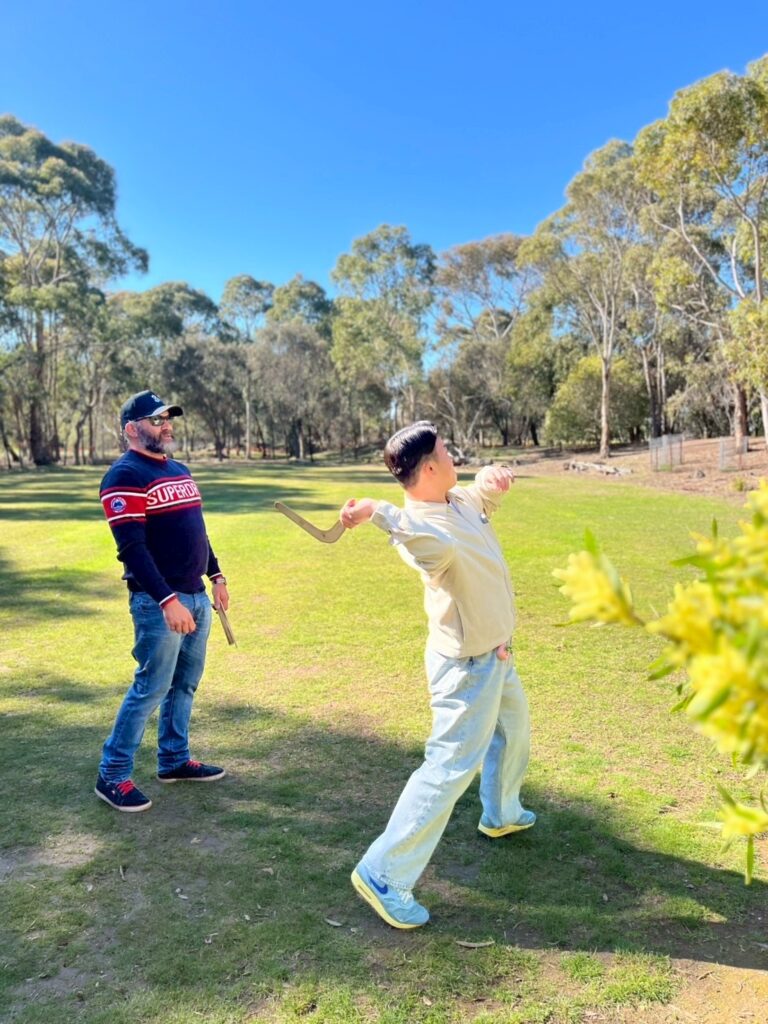 本日はオーストラリアの先住民アボリジニの人々の文化センターを訪問して、彼らの文化や歴史を学びました。カンガルーの毛皮やエミューの卵(緑!!)を触らせてもらいました!ブーメラン🪃の投げ方を教わりました。