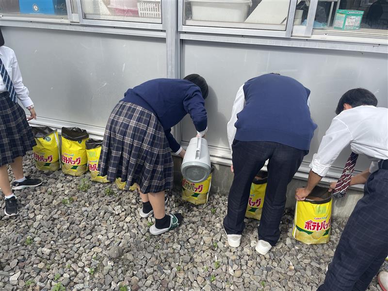 じゃがいもとホウレンソウを植えました。天気も良く、重たい肥料を協力して中庭まで運びました。たくさん収穫できるといいと生徒たちは願っていました。