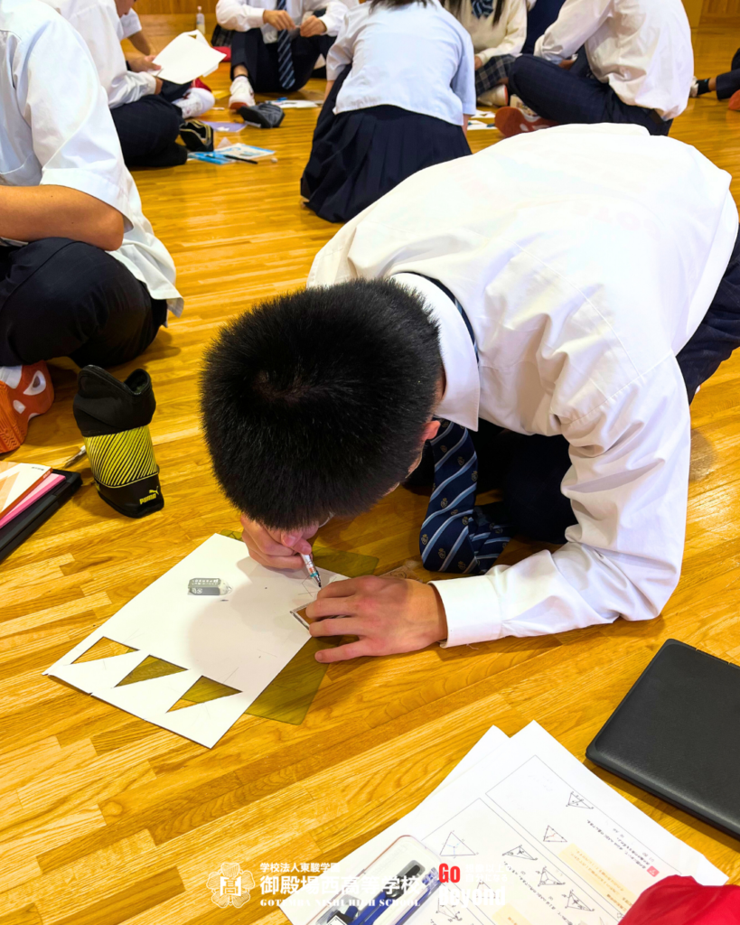 3クラス合同ということで、他のクラスの生徒とも交流し、いつもよりも楽しそうな生徒の様子が見られました 。数学が苦手な生徒も、積極的に取り組んでいました 。