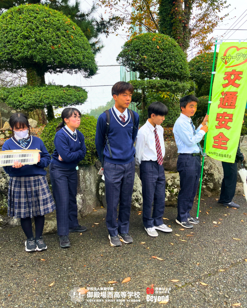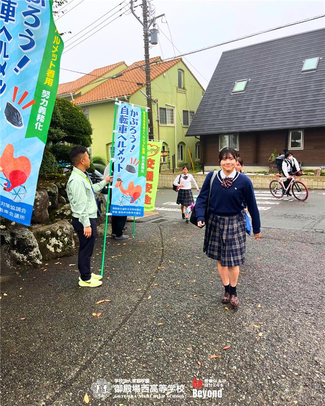 この取り組みは御殿場市内の高校にて、自転車マナーの向上、安全運転の徹底、盗難防止の施錠の徹底などを促すもので、本校でも登校指導に合わせて行っております。