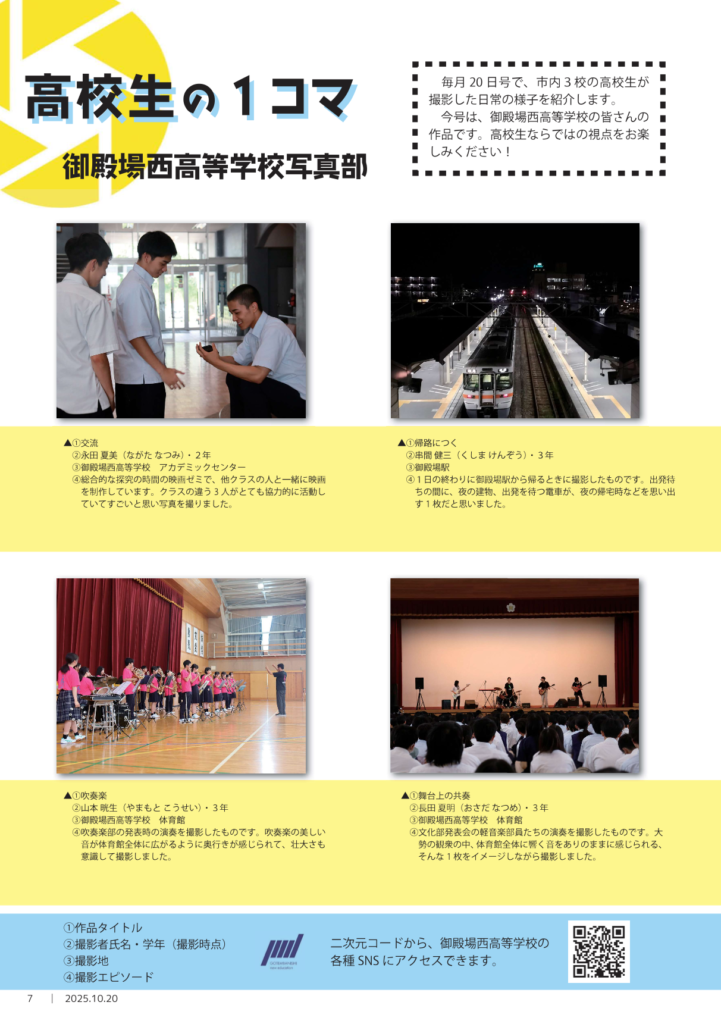 広報ごてんば10月20日号に御殿場西高校写真部とグローバル教育の取り組みが掲載されています。