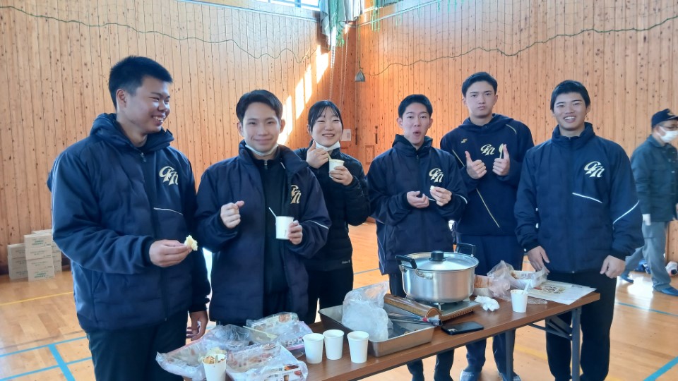 御殿場西高校のある茱萸沢上区の防災訓練には、本校の第1寮、第2寮の生徒が参加しました。避難経路確認と防災士の指導のもと地域の方々と一緒に防災クッキングを行いました。ご飯、サバカレー、蒸しパン、さつまいもの甘煮をビニール袋を使用して調理し、試食では美味しさに驚いている様子もありました。広告紙とビニール袋でお皿も作り、防災への備えなどのお話も聞きました。災害時に役立つ勉強となる 大変良い経験をさせていただきました。