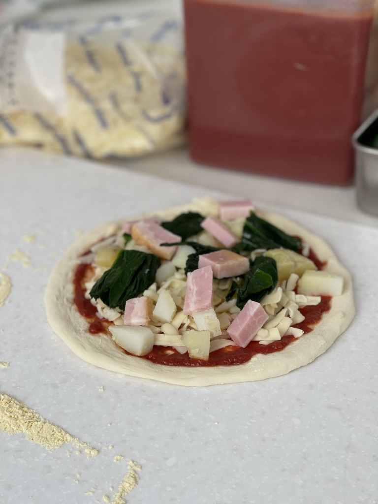 郊外研修で直接お店に交渉に行き、見事オリジナルピザの作成と販売の機会をいただくことができました。