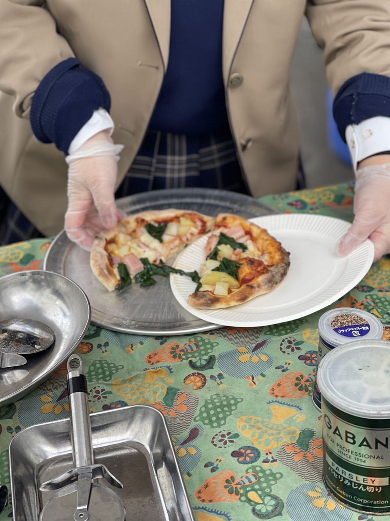 お店の前には行列ができ、窯で焼くピザを首を長くして待つ生徒や先生方の姿がありました。