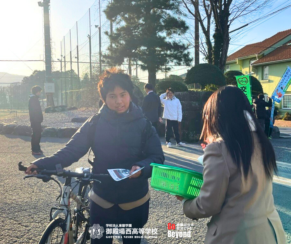 今年度3回目の実施となる同キャンペーンですが、御殿場警察署、御殿場市役所のご協力のもと、本校教員全員で生徒たちの交通マナーや交通安全意識の向上を促すことを目的としています。