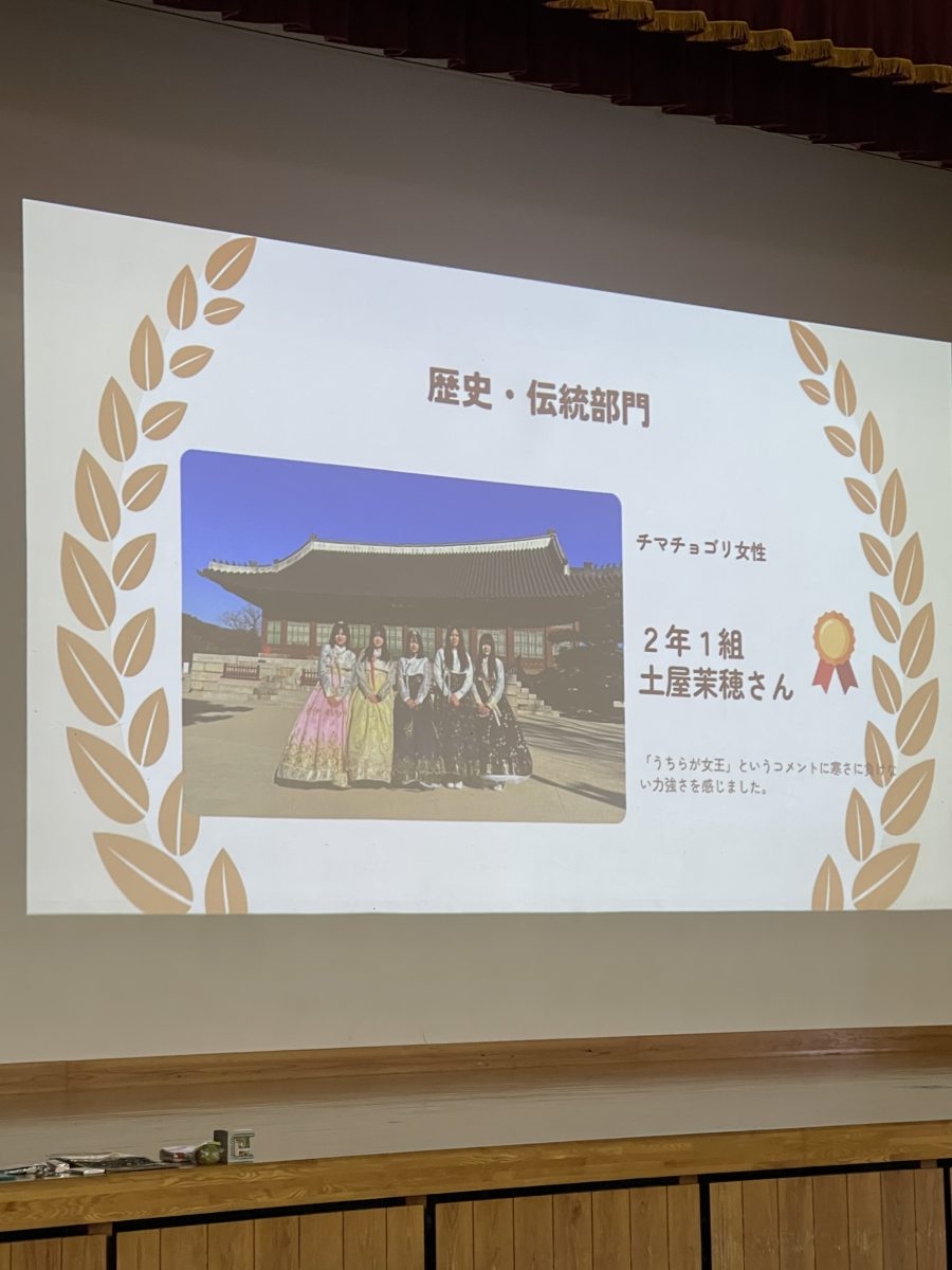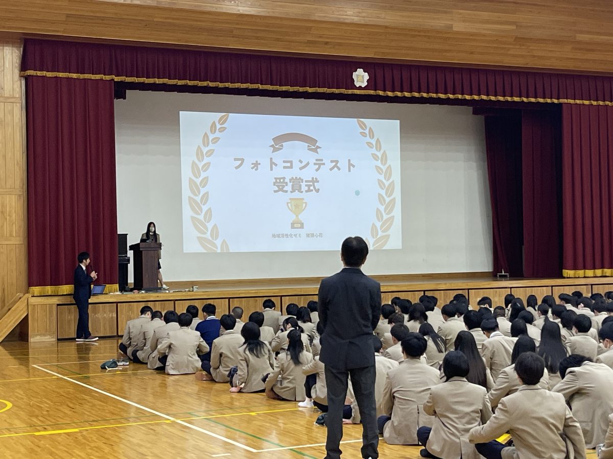 3月19日(木)探究ゼミ(2年)地域活性化PRJの活動の一環として開催した「呪学旅行フォトコンテスト」の表彰式が行われました。