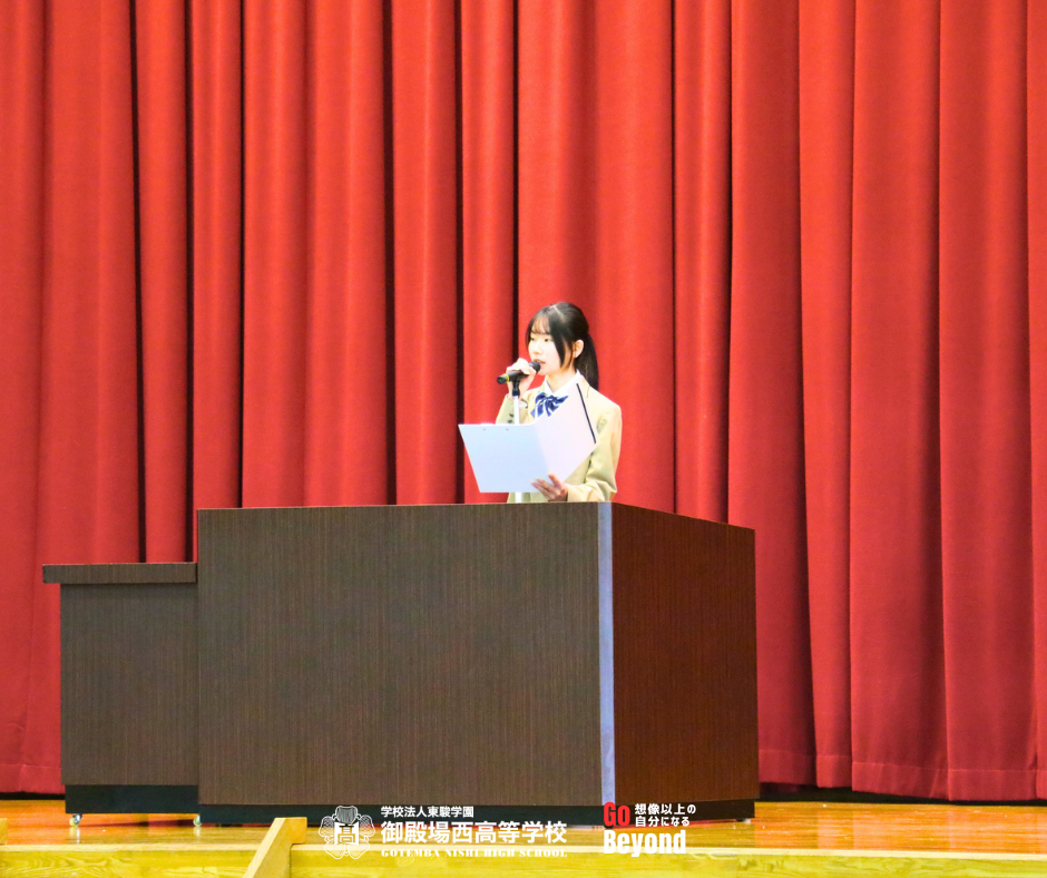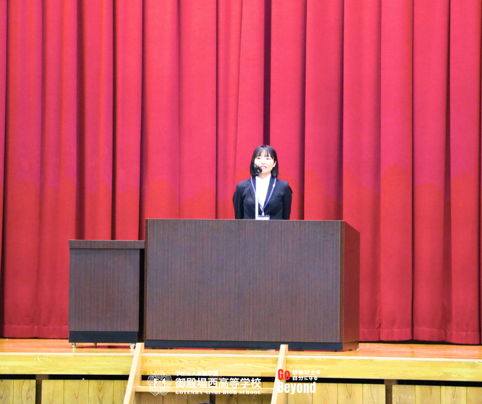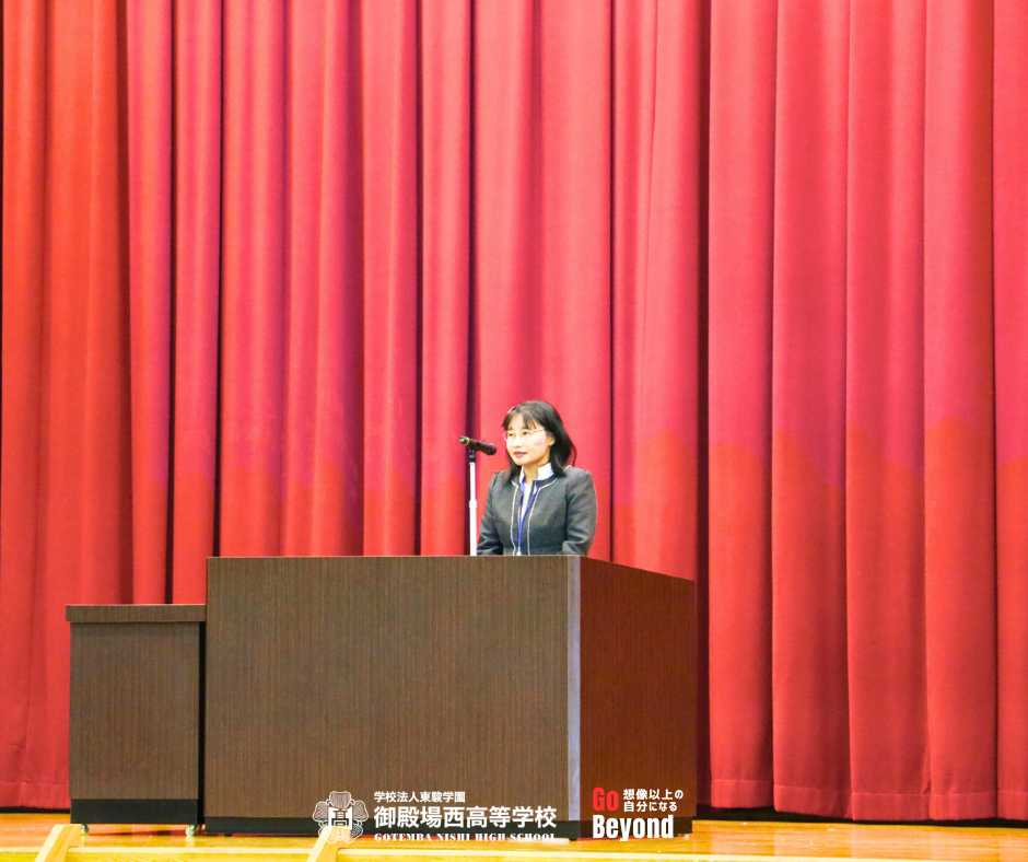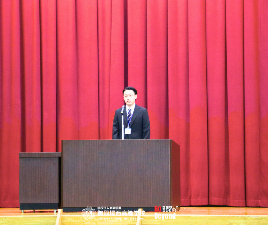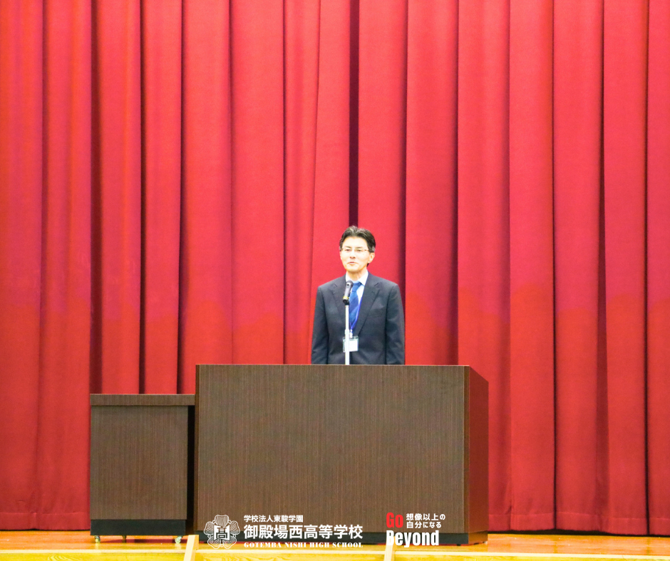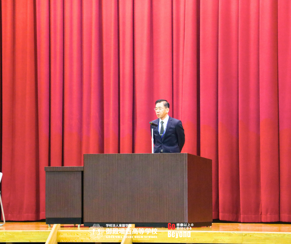 校長からは新年度ということで改めて学校の教育方針について説明があり、創立以来変わらない建学の精神や校訓、これからの時代に向けた学校の目指す姿、「Go Beyond 想像以上の自分になる」の実践に向けた考え方や価値観について説明があり、生徒も教職員も同じ視点で一年を通してやりきっていこうという話がありました。