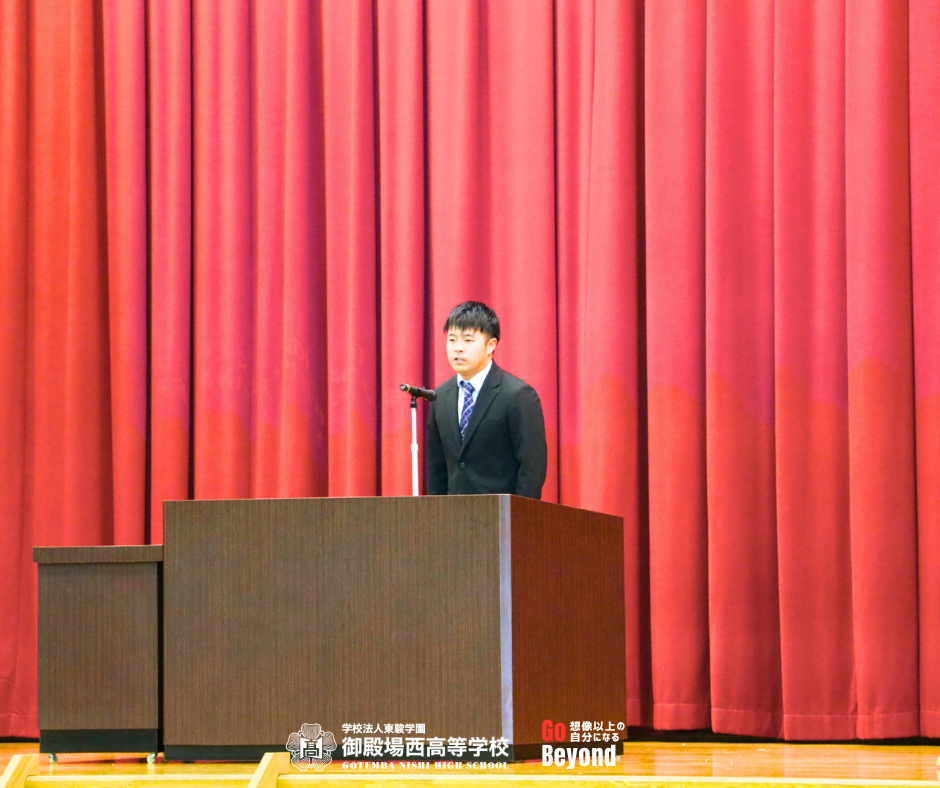 また、7人の新任の先生をお迎えしました。七人の先生方からは新天地での新たなスタートに向けた抱負と、生徒たちへの熱いメッセージが送られました。
