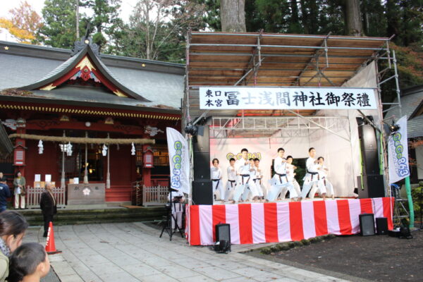 この程、空手道部が世界文化遺産「富士山」構成資産の「富士浅間神社」御祭礼(小山町)で奉納演武を行いました。