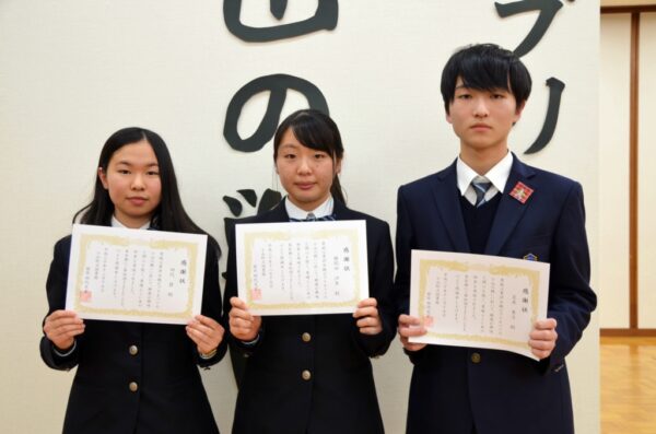 12月15日(土)に開催された、小山町立図書館主催の「書評合戦ビブリオバトル大会 小山の戦い」に、荒井秀斗さん(1年生)、勝間田汐里さん(2年生)、田代碧さん(2年生)の3名が出場しました。