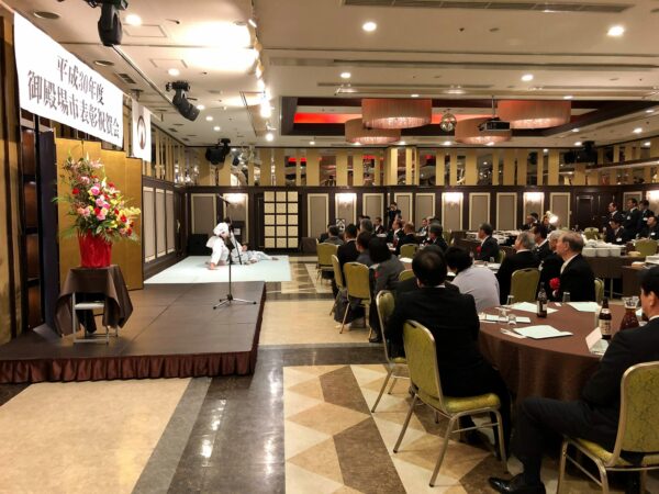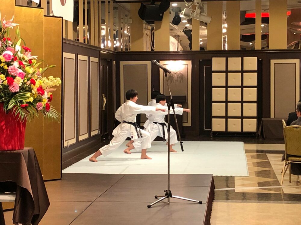 祝賀会では、空手道部女子3名が団体形演武を披露し、会場にいる方々より大きな拍手をいただきました。